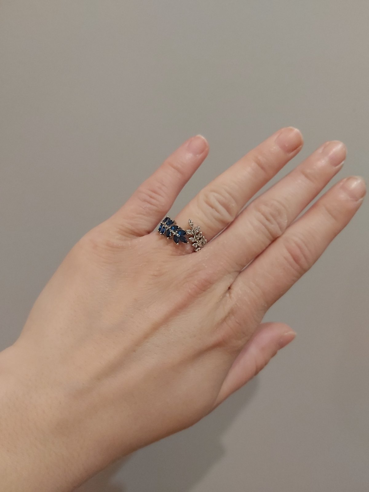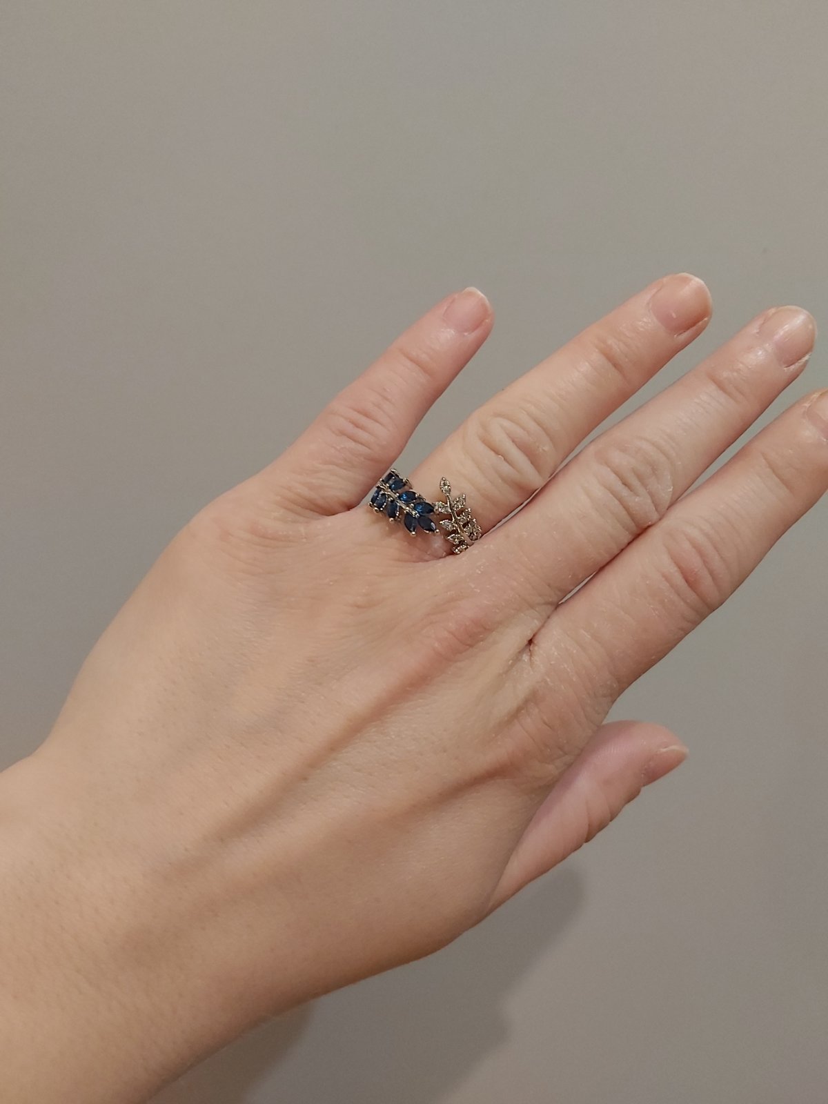 Prstienok vo forme kvetu,zopar kamienkov je vypadnutych z kvetu.Prsten je roztahovatelny.