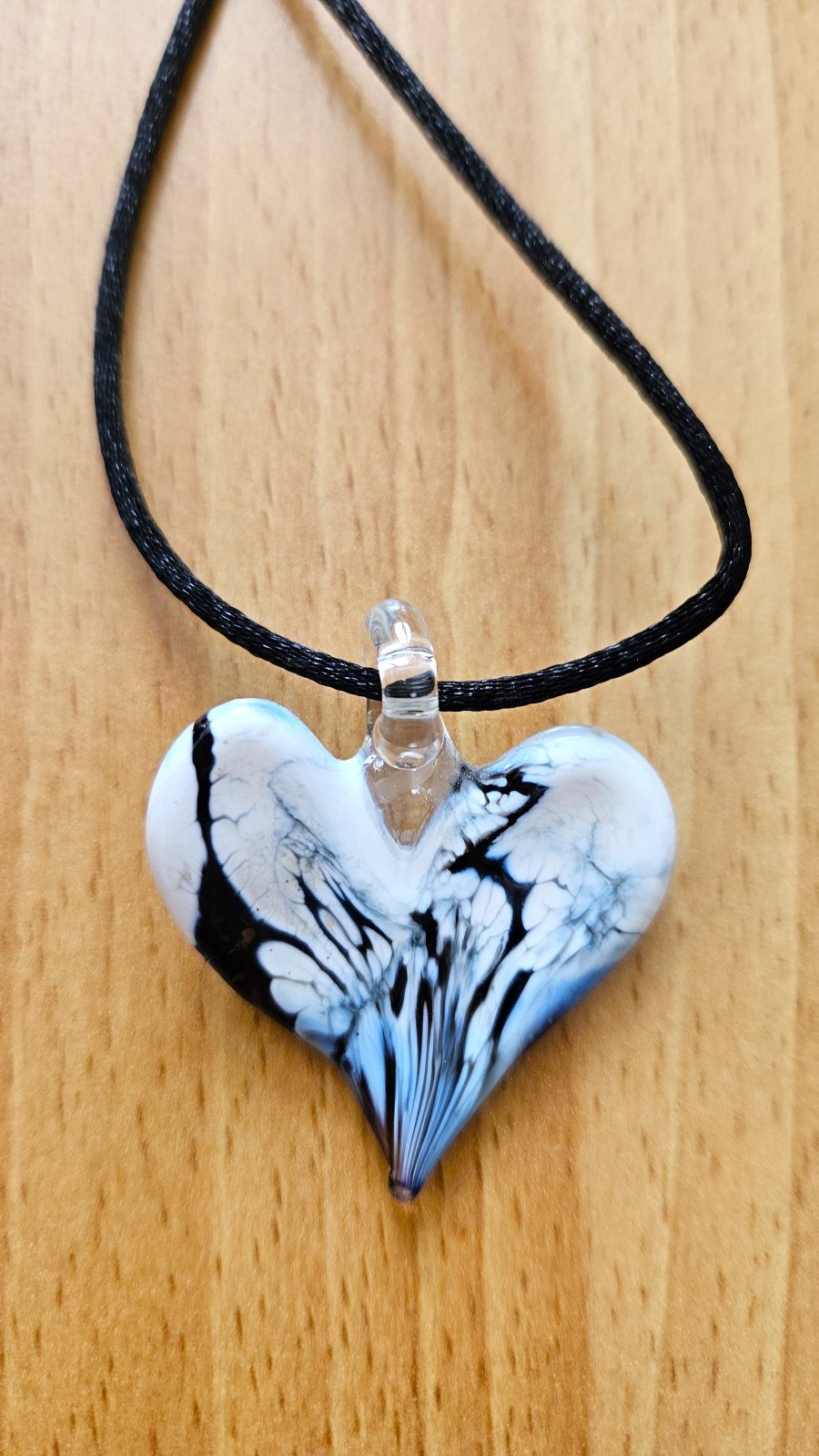 ručne robený živicový prívesok v tvare plochého srdca, modrej farby