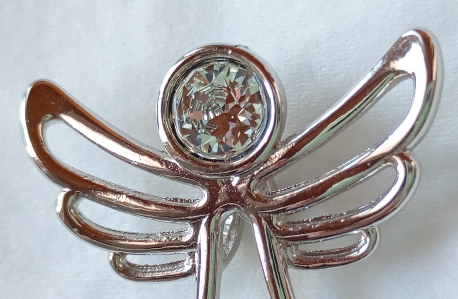 Prívesok na retiazku resp. do náhrdelníka v striebornej farbe v tvare anjela, s dekoratívnym bezfarebným kamienkom tvoriacim hlavu anjela.