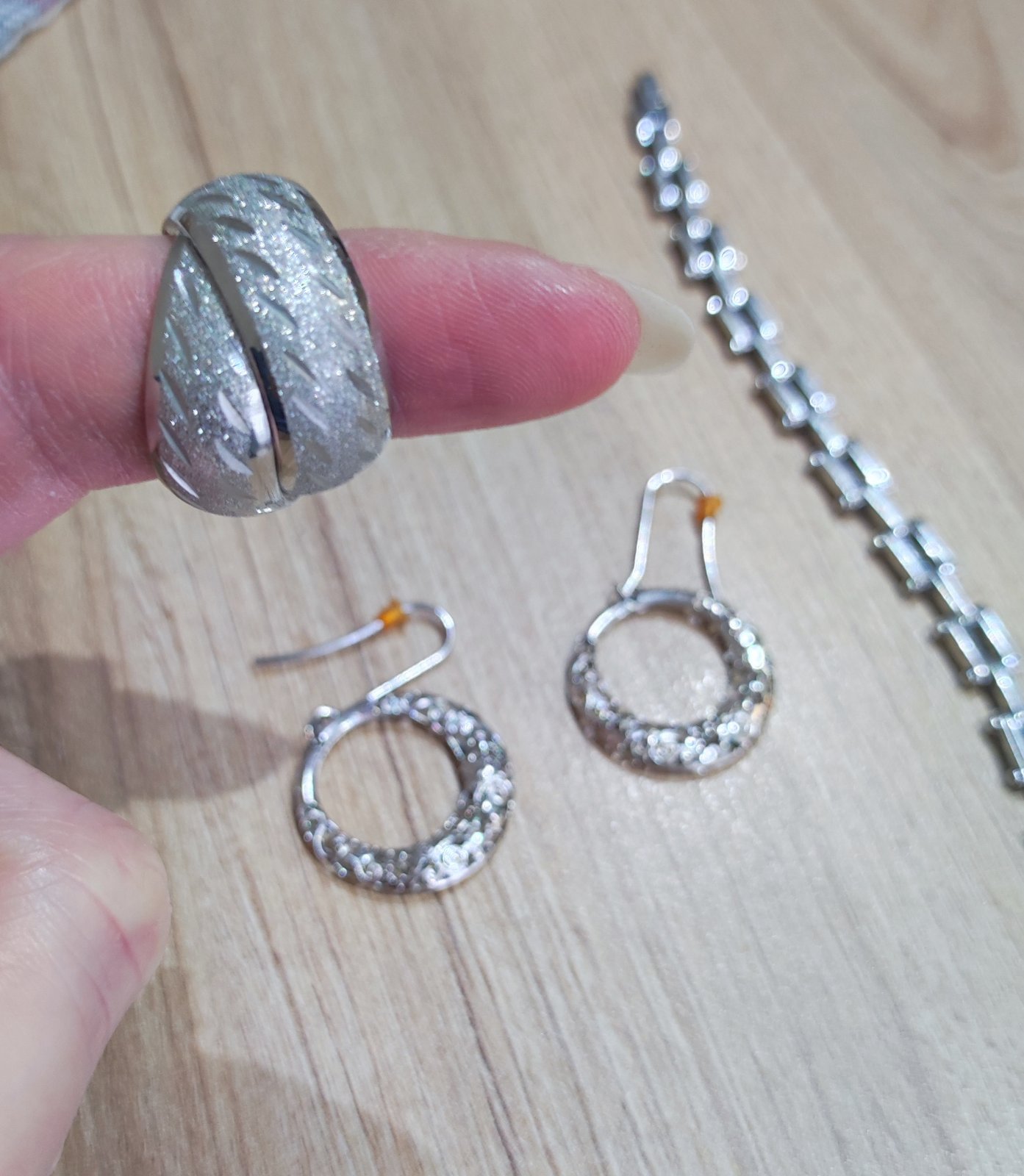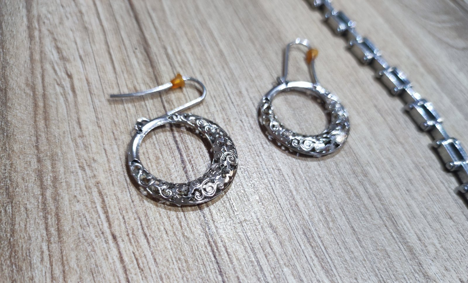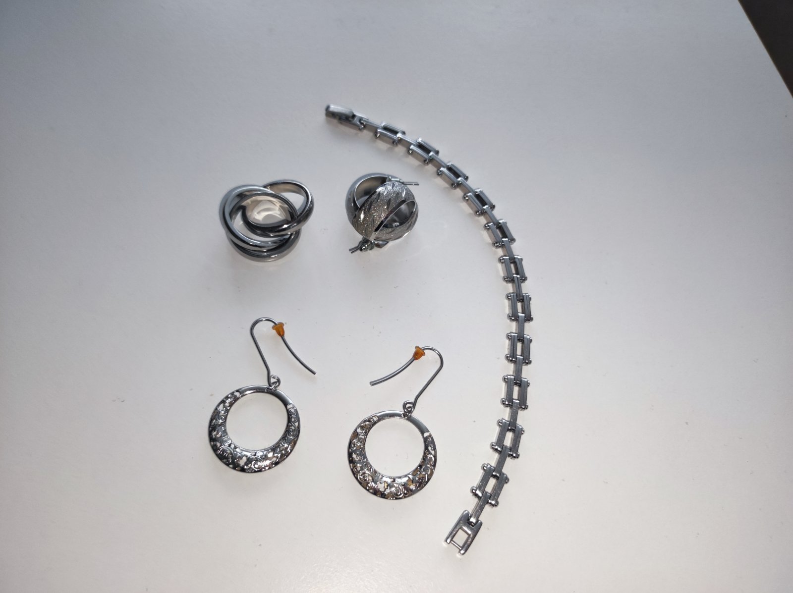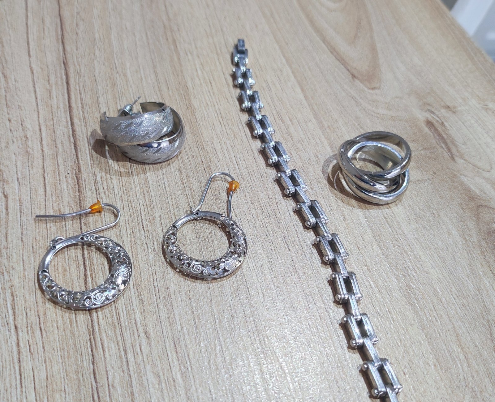 1x matné brúsené so vzorom. Šírka 8mm, 1x visiace duté s ornamentom a vyrezavanim,, veľmi zaujímavé.