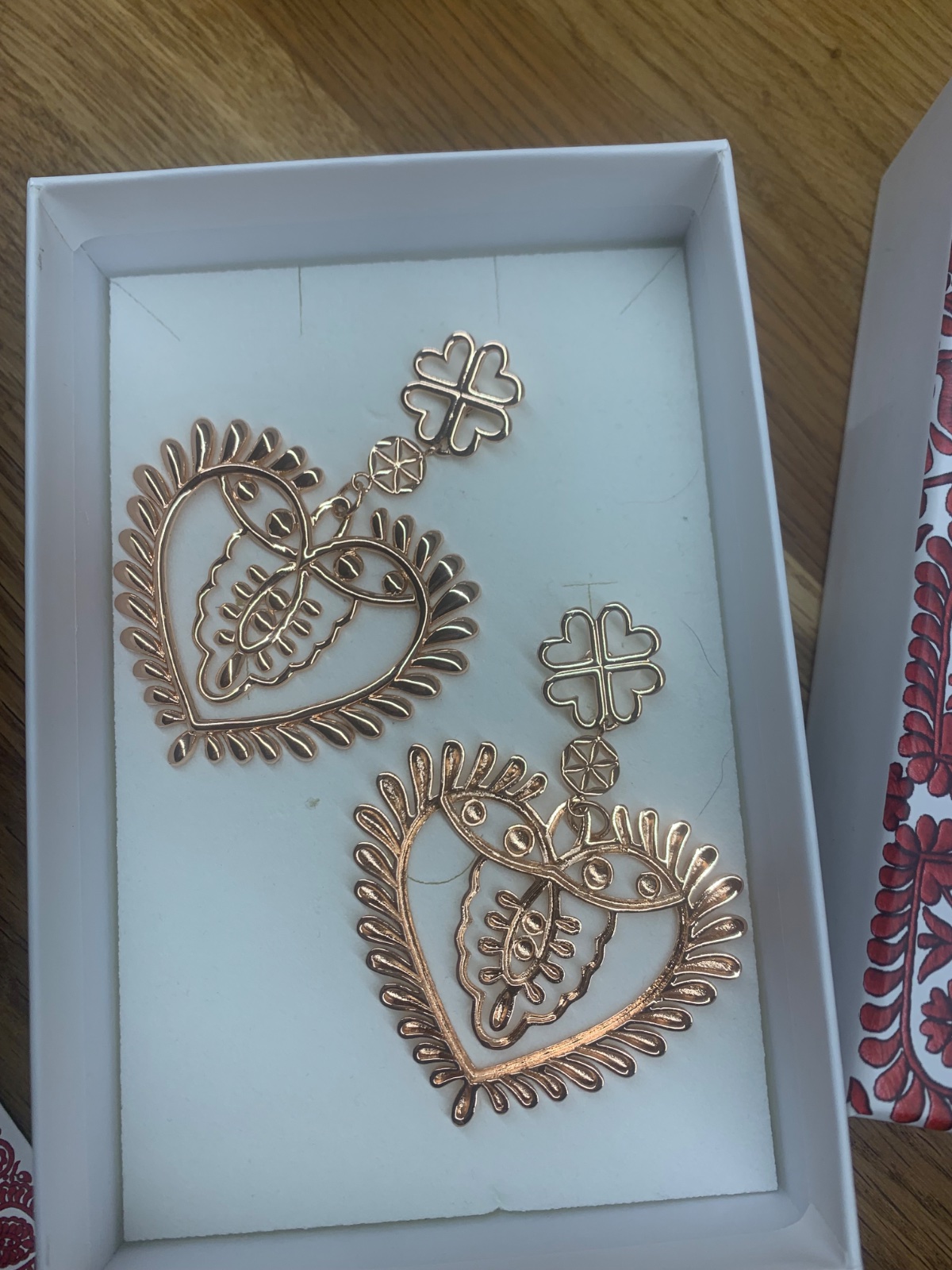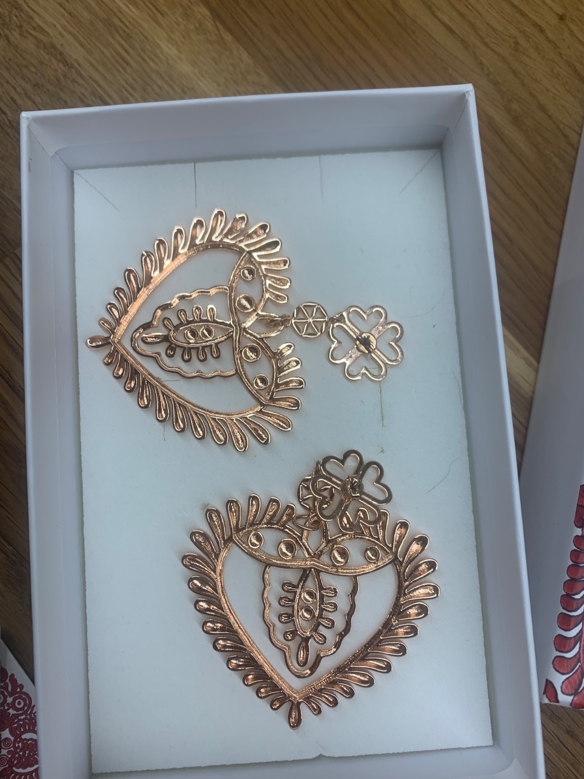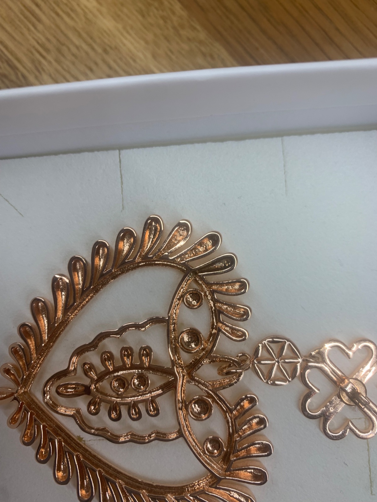 farba ružové zlato, len skladované, jeden lupeň na srdiečku zo zadu o odtieň tmavší, ale tak som ich už kúpila,