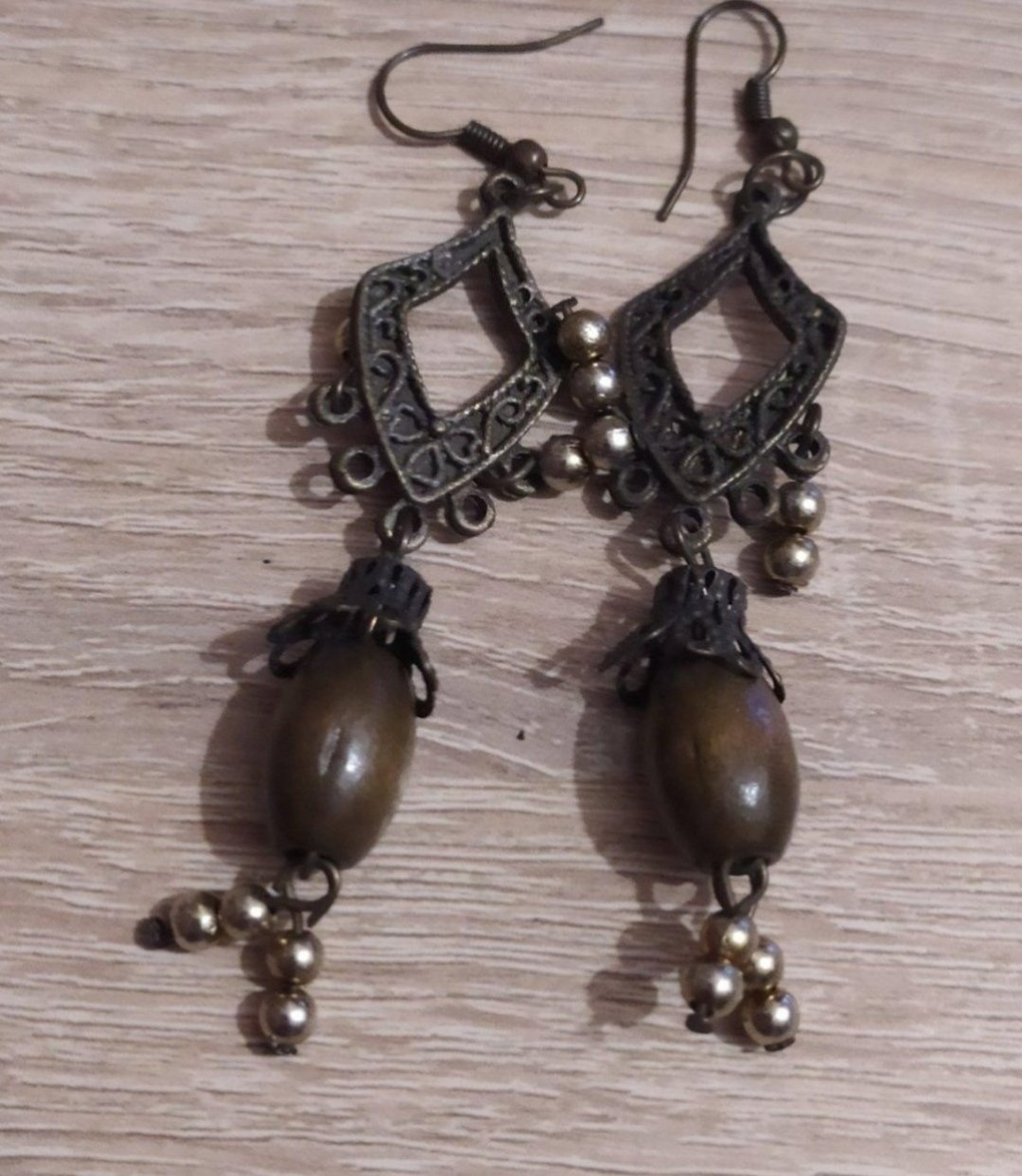 Volne uz len ľavé spice (vpravo slzicky predane).Drevene nausnicky, nove nepouzivane, bez poskodenia.Kupovane v Španielsku.