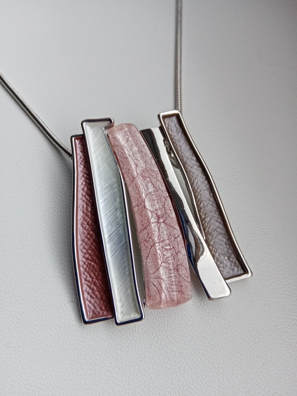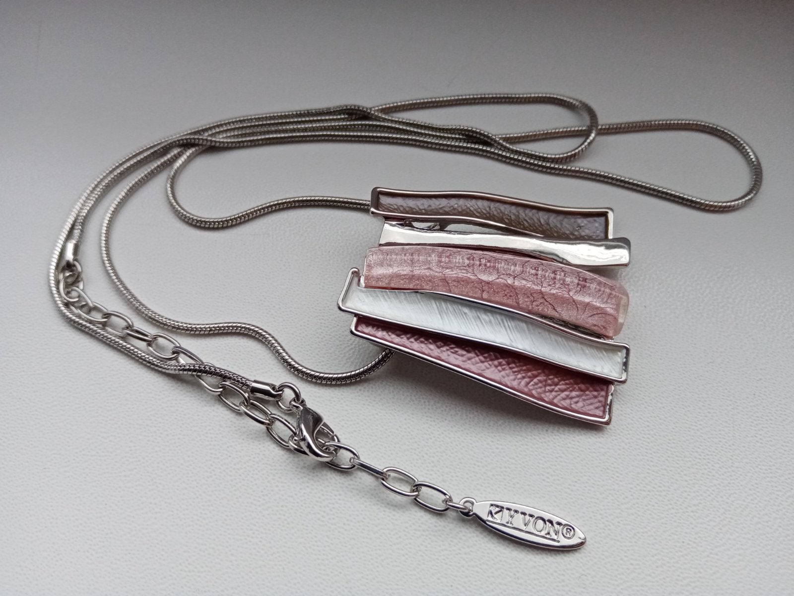 Strieborný náhrdelník s príveskom v perleťovo ružovkastej farbe. Značka Yvon. Antialergický, luxusný náhrdelník vyrobený z prírodných materiálov. Nosený len málo, top stav. Výška prívesku 4,5 cm. Retiazka je dlhá, od zapínania po prívesok 35 cm a viac (dá sa nastaviť).