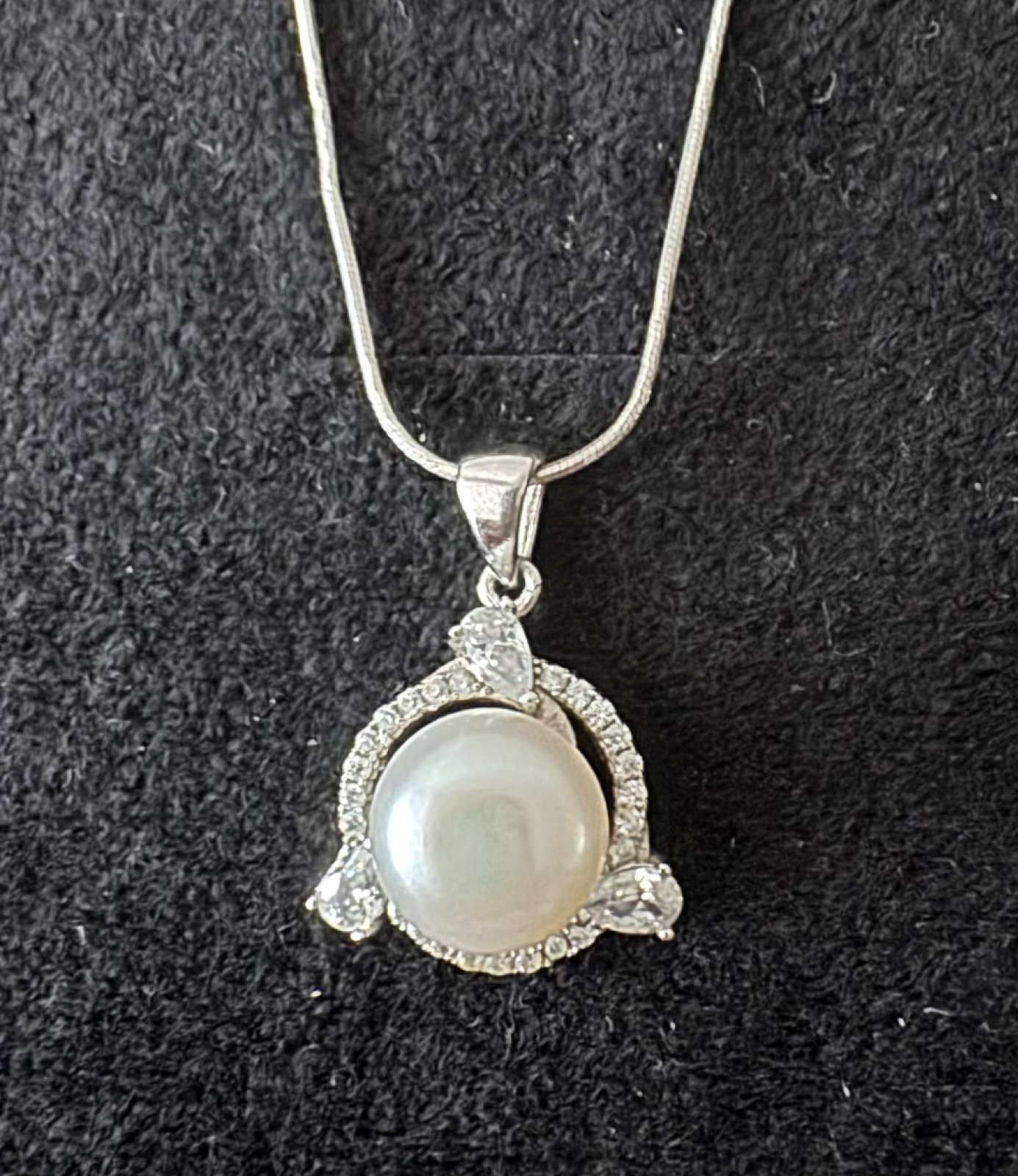 Krásny perlový prívesok so zirkónmi, perla je pravá s oficiálnym certifikátom a striebornou retiazkou, výrobca FILEVI, dĺžka 45cm. Povodná cena 239€, teraz 119€.
