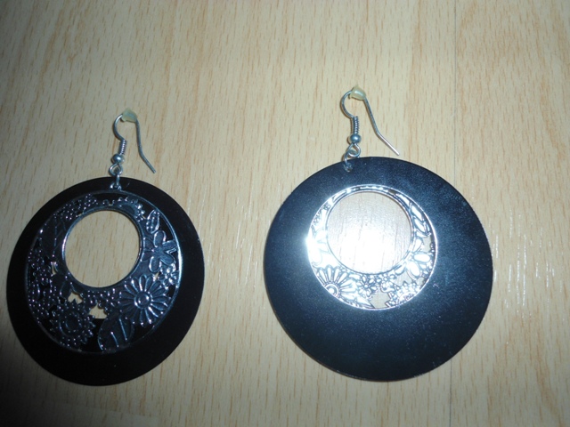 460a. cierno-strieborne nausnice, kruh 5x5,5cm