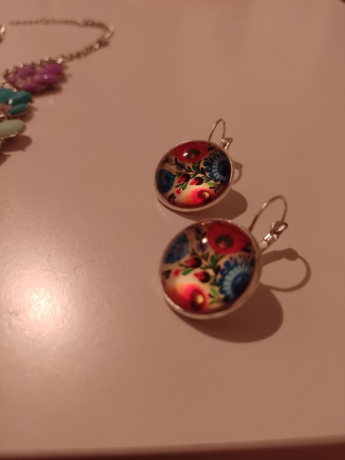 Krásne folklórne náušnice ,vôbec neotmavli.Hodiace aj k folklórnej sukni ,ktoru mám.v bazariku.