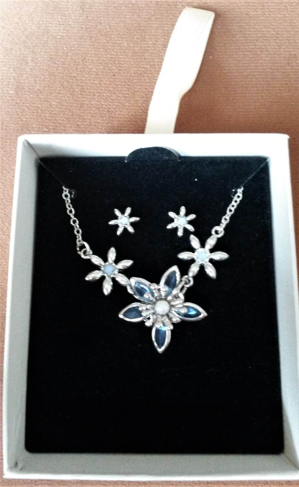 Farba strieborna s modrymi kamienkami