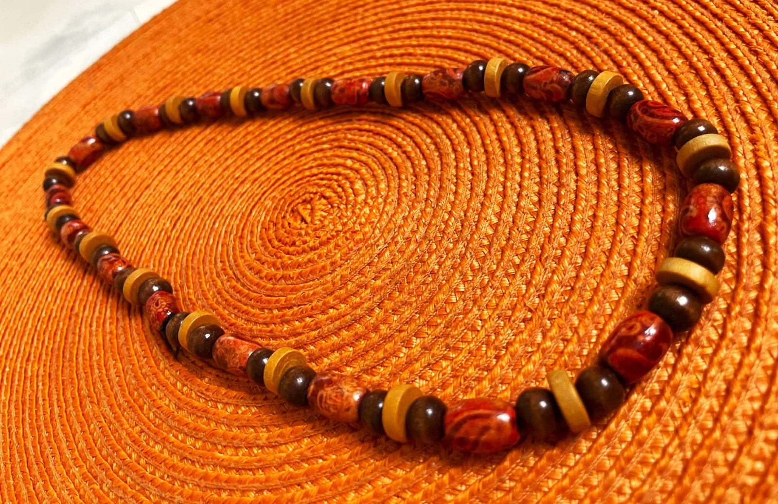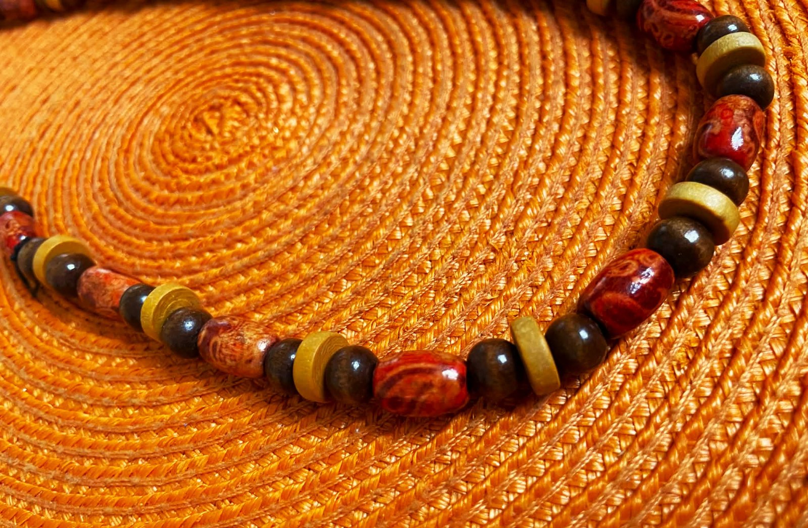 krásne naturálne drevené korálky na gumičku,top stav,privezené z Maroka,málo užívané,veľmi zaujímavé a netuctové,50 cm