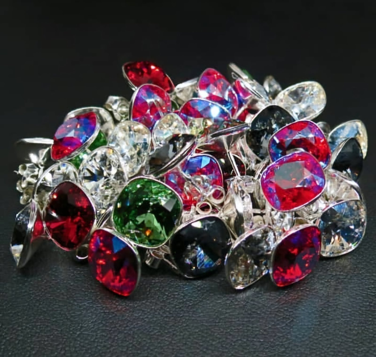 a Swarovski kameňmi rôzne farby Moonlight, Light sapphire shimmer a Light siam shimmer.