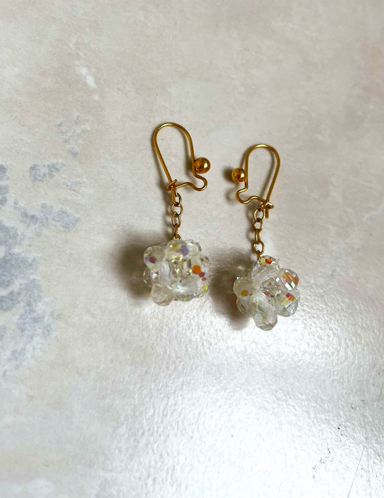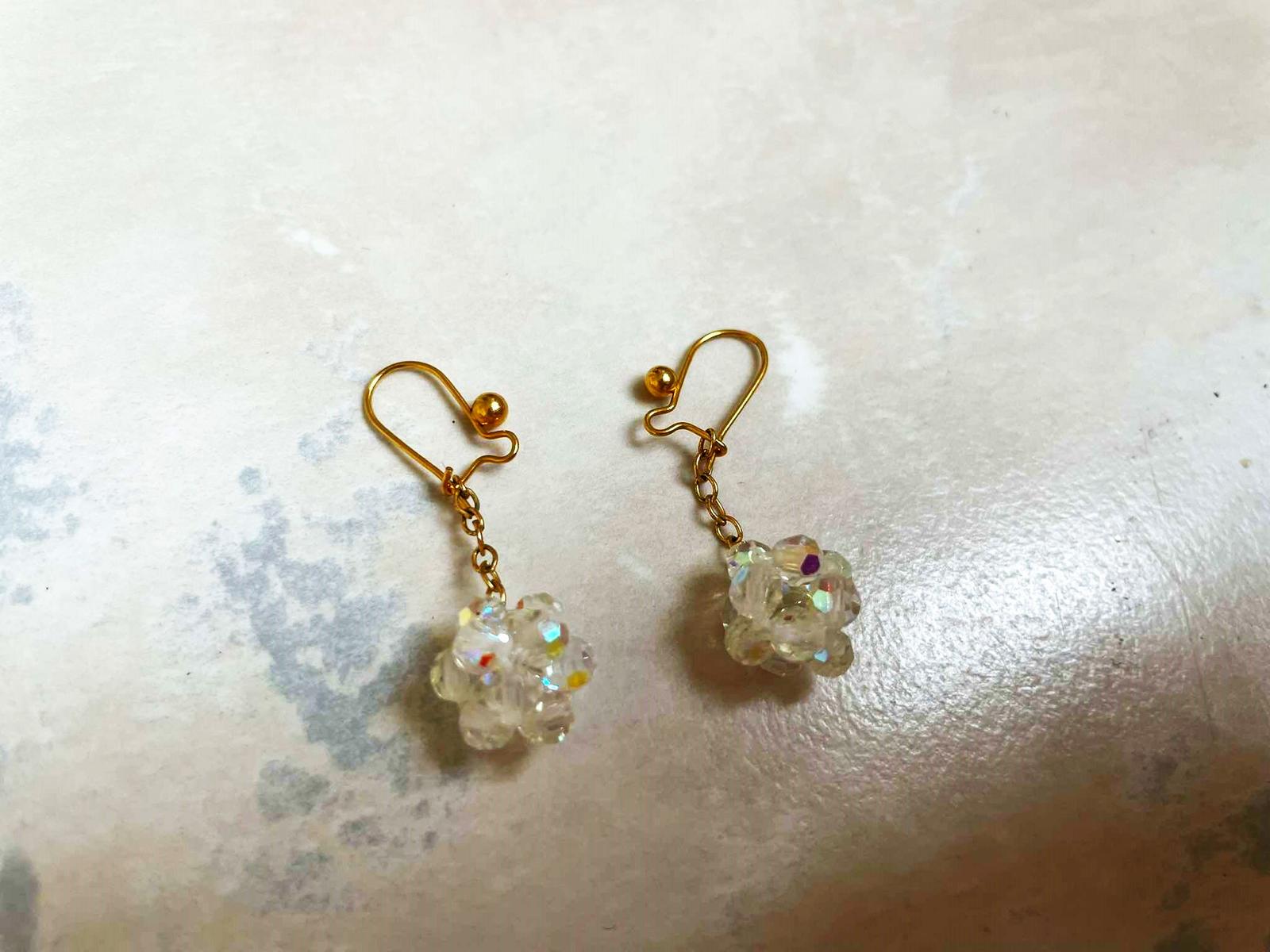 nádherné visiace náušnice,1 x použité,top stav - ako nové,vhodné aj na svadbu,guličky krásne lámu svetlo a hrajú všetkými odleskami farieb,kvalitná bižutéria