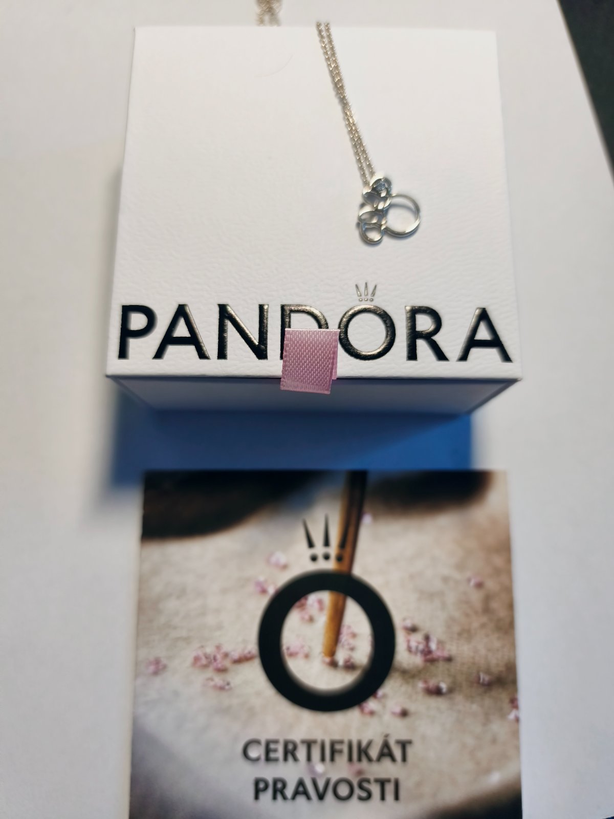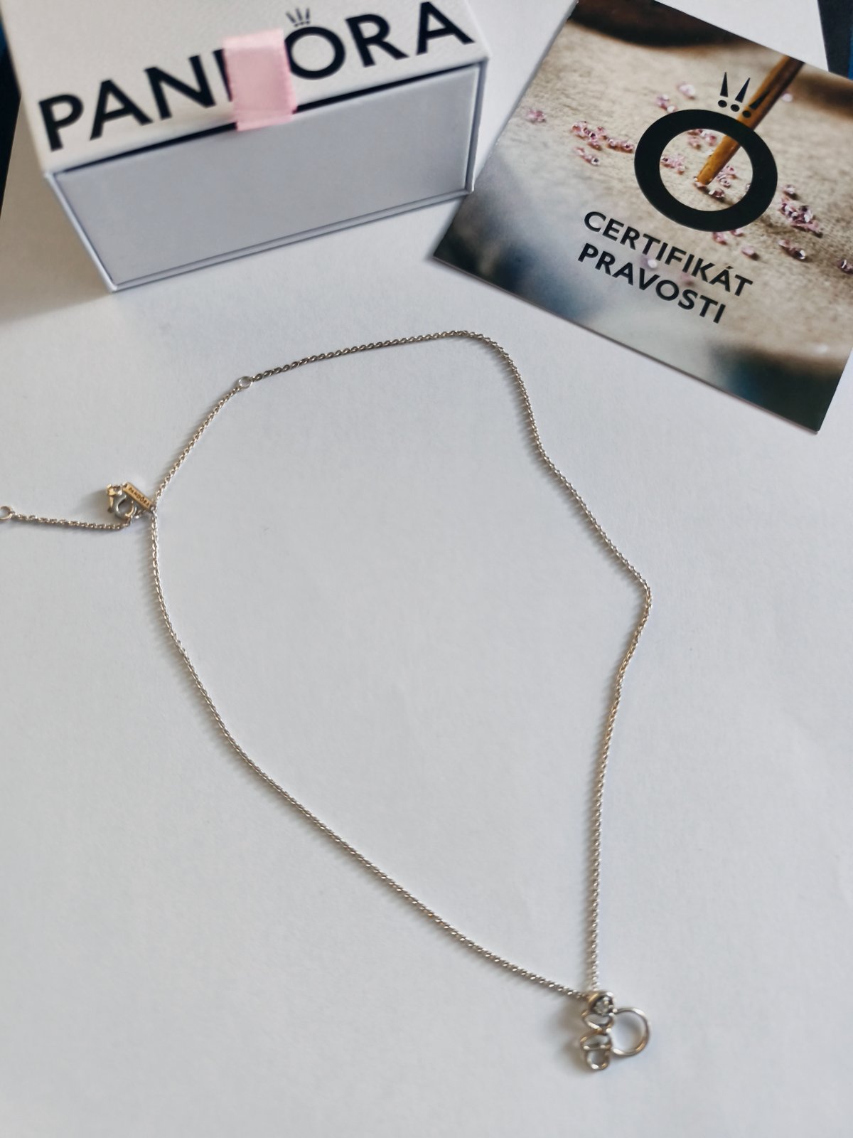 Takmer nenosený náhrdelník. Vzatý asi dva krát. Je to originál, kupovaný v Pandora obchode. Strieborný a v prívesku zirkón. Pôvodná cena bola viac ako 100€