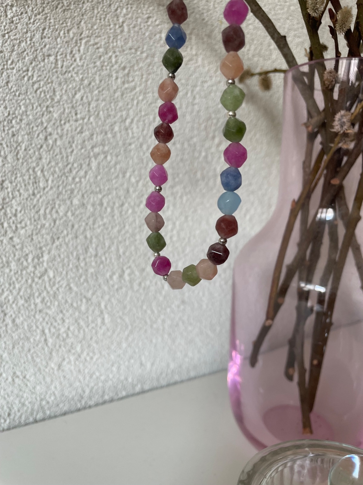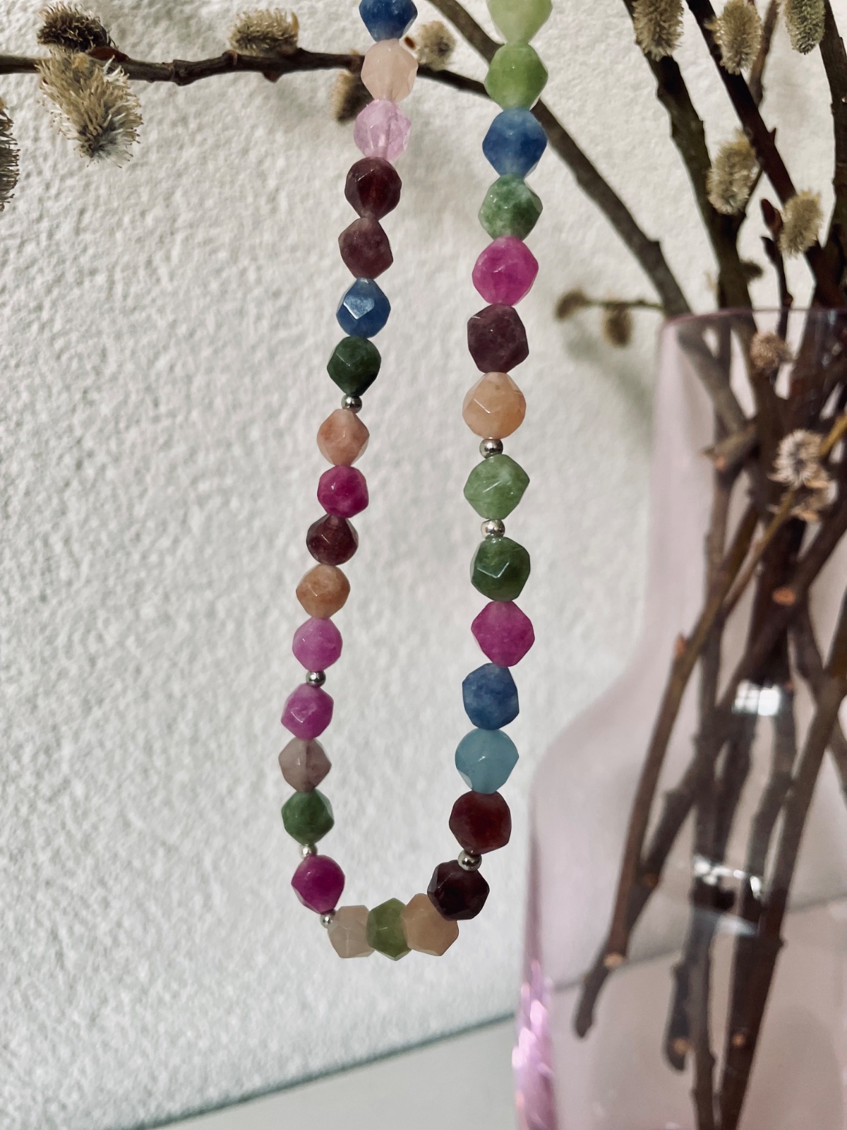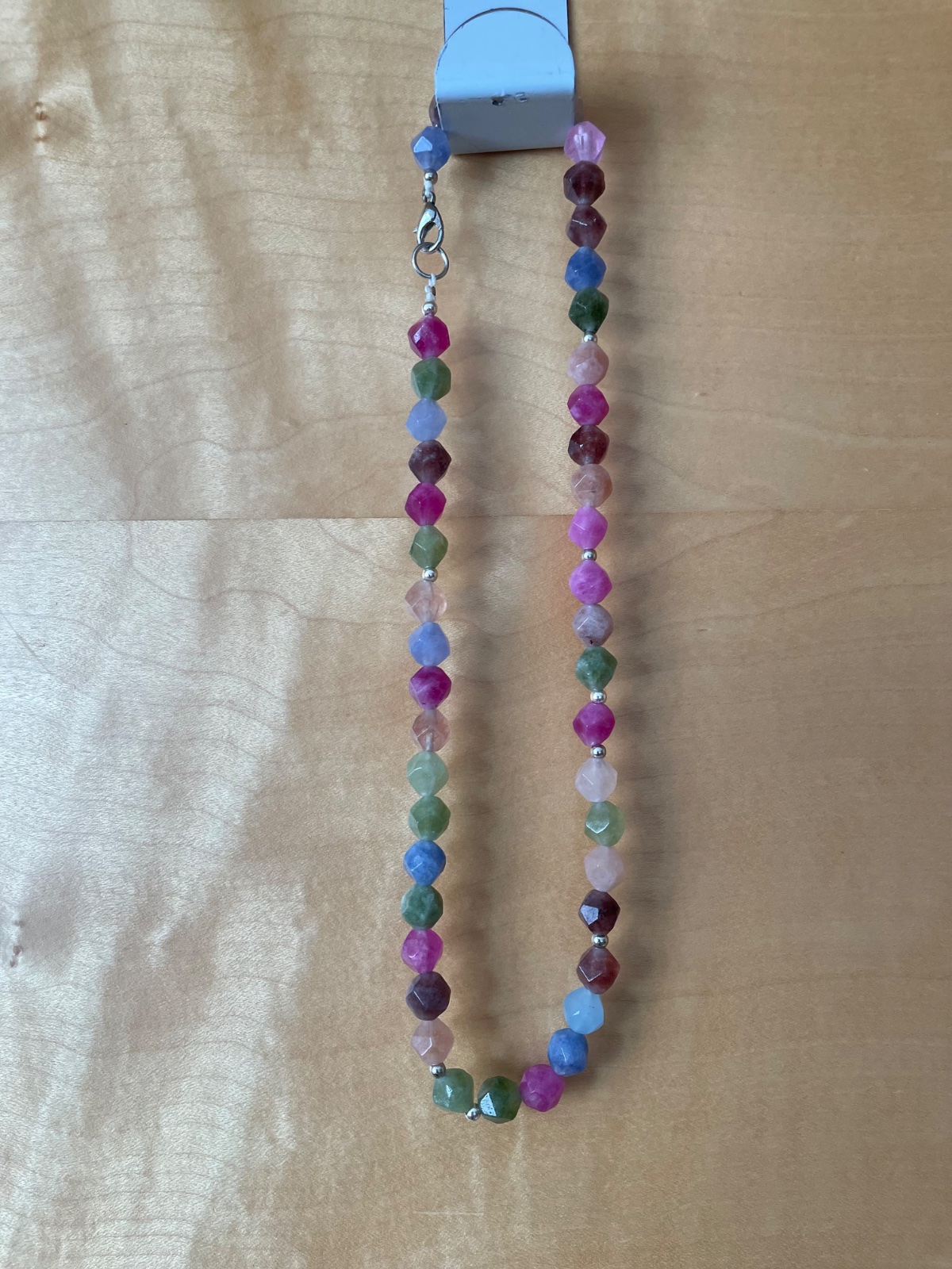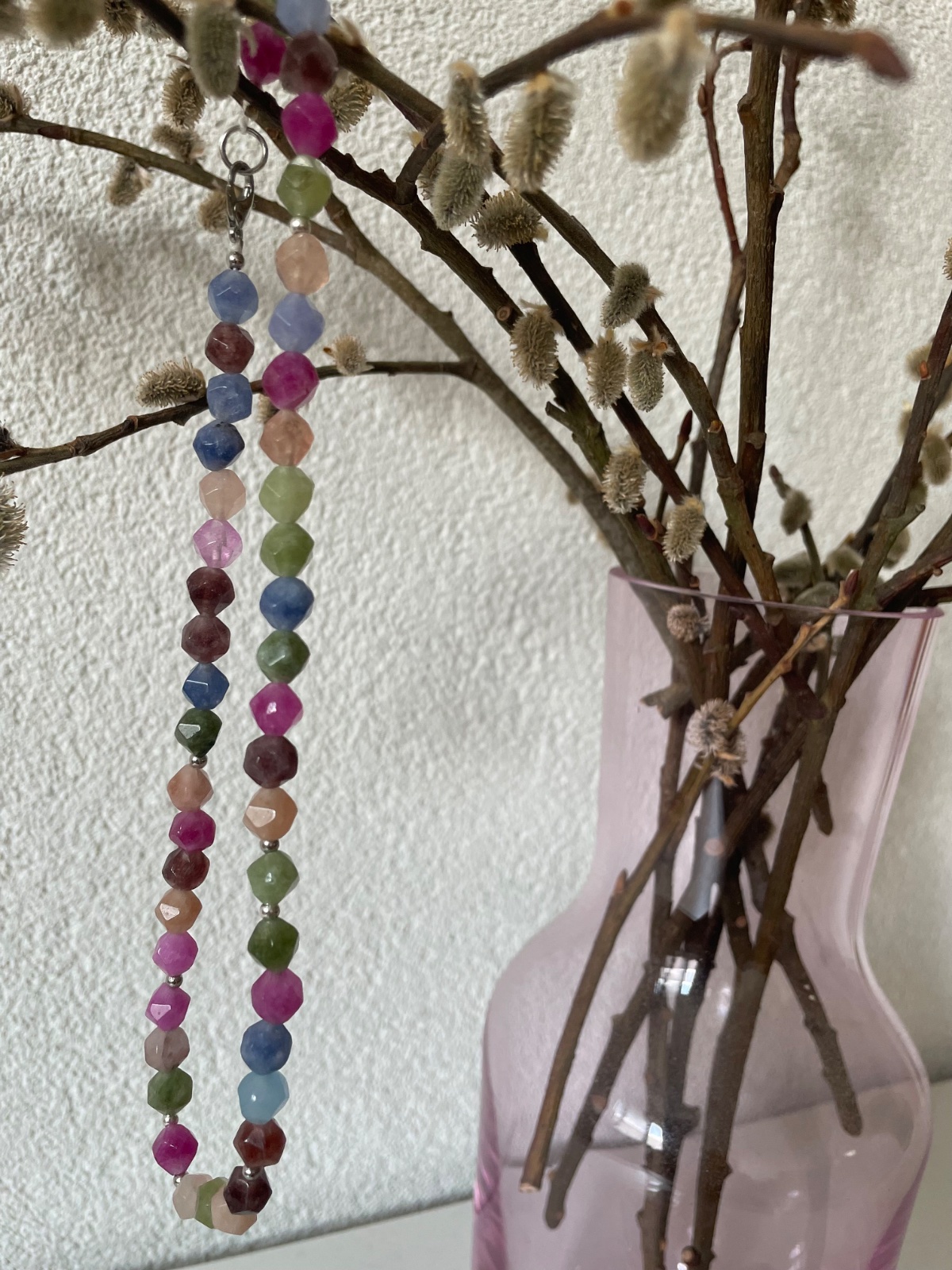 krasny farebny nahrdelnik v pastwlovych farbach, dlzka cca 40-41 cm