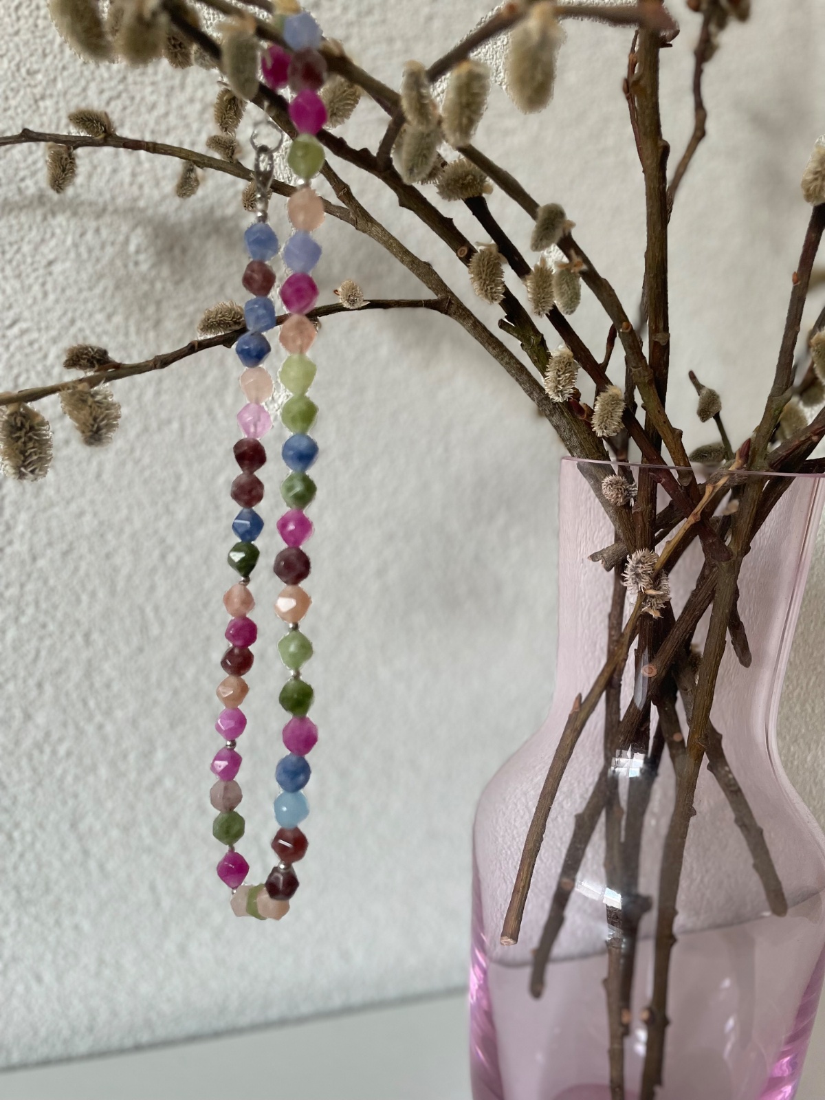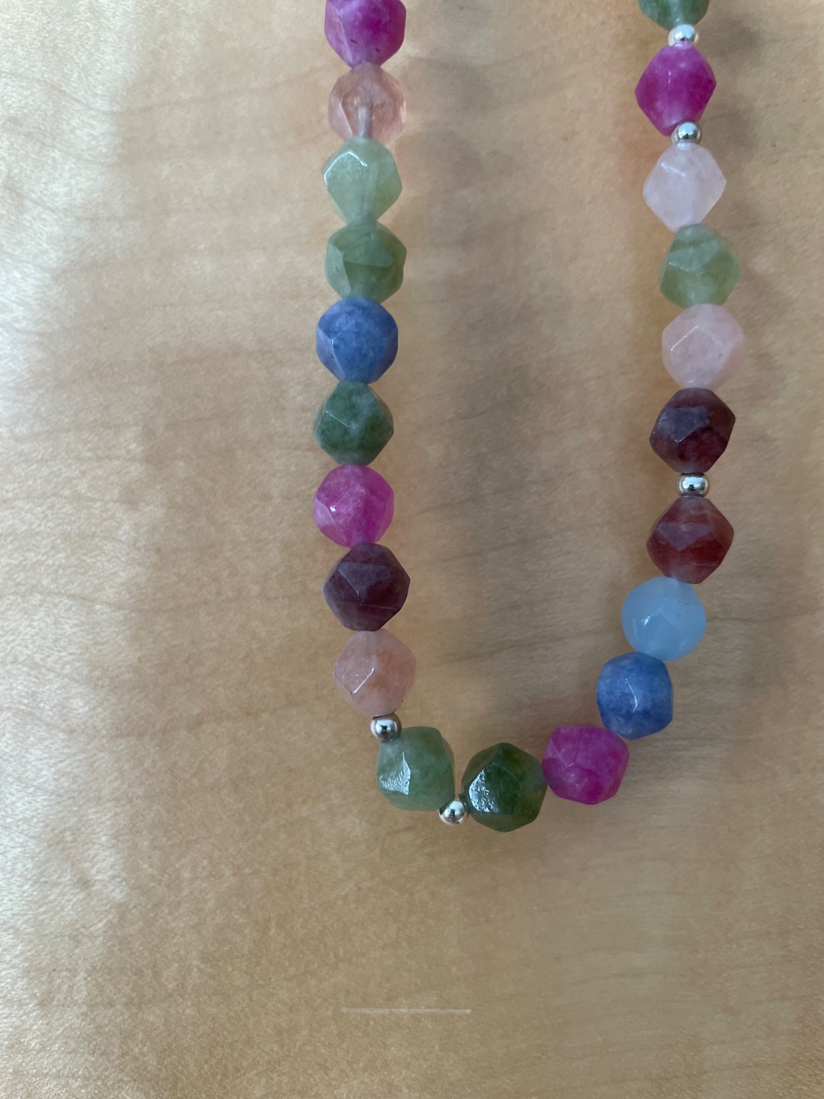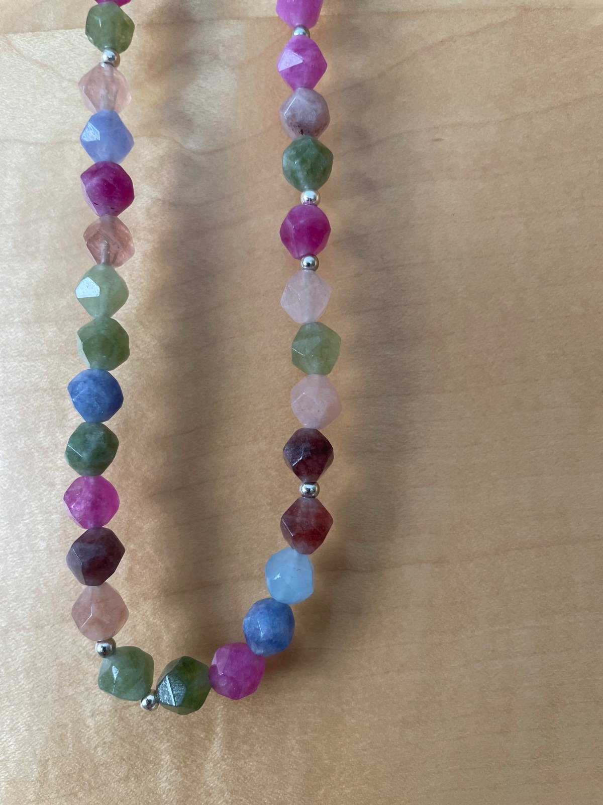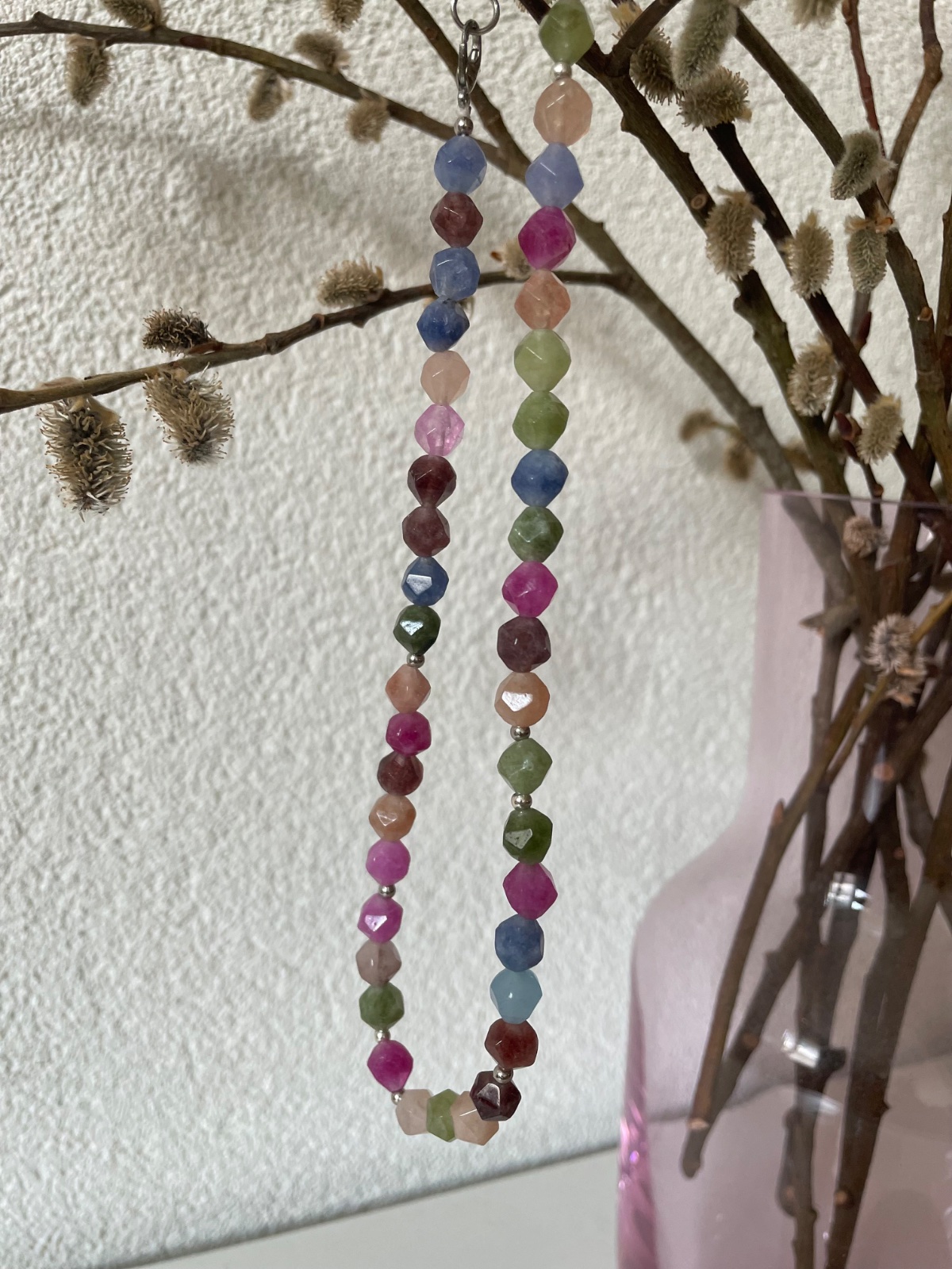 krasny farebny nahrdelnik v pastwlovych farbach, dlzka cca 40-41 cm