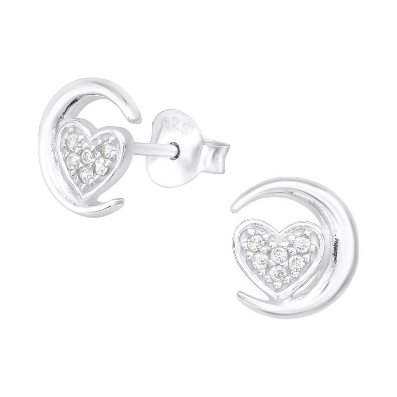 Strieborné puzetové náušnice Mesiac so srdiečkom vykladané s 12 zirkónmi 🌜💎 🤍