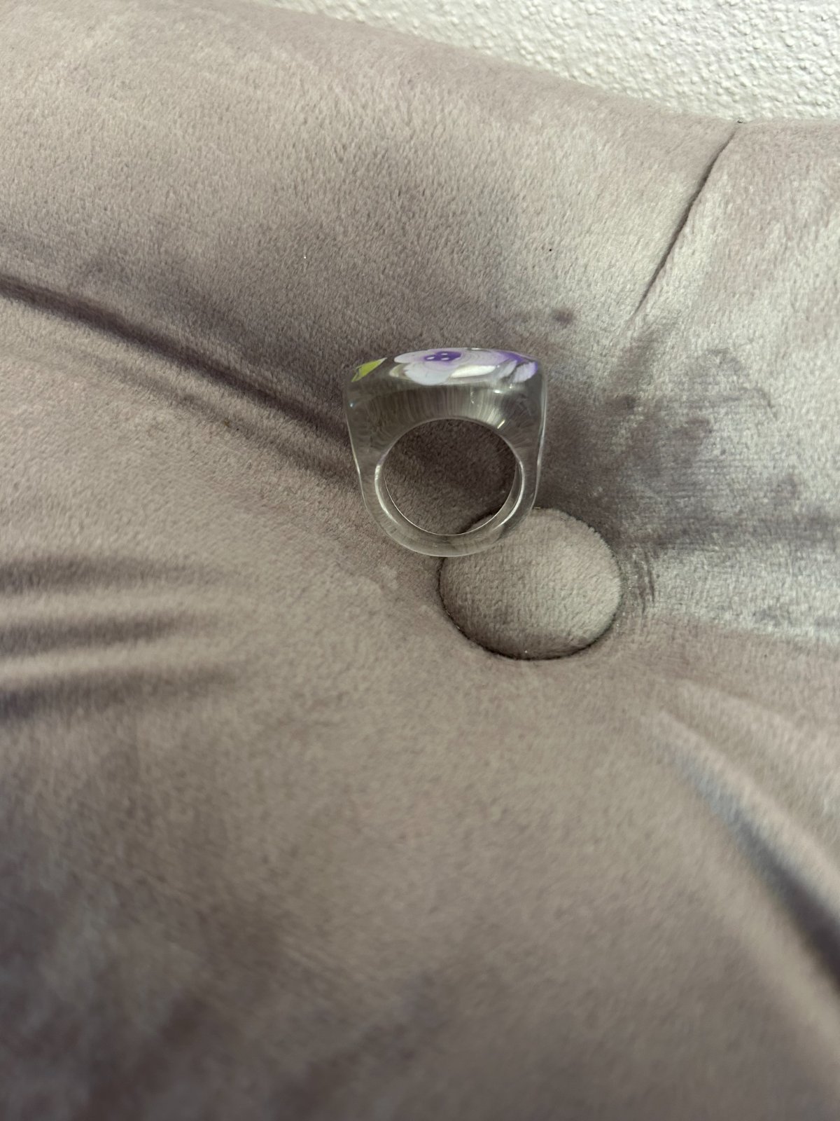 Plastový prsteň, zachovalí, obv.1,8cm, vrchná ozdobná časť 1,7x2,5cm.