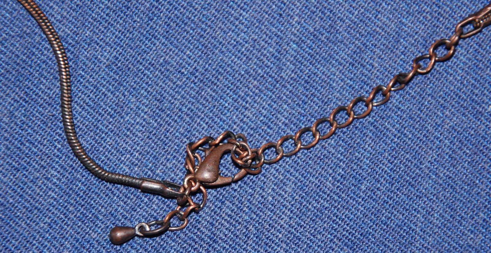 Raz použitý, bez poškodenia, nechýba ani jeden kamienok. Dĺžka reiazky 39,5 - 47 cm, prívesok 11 cm.