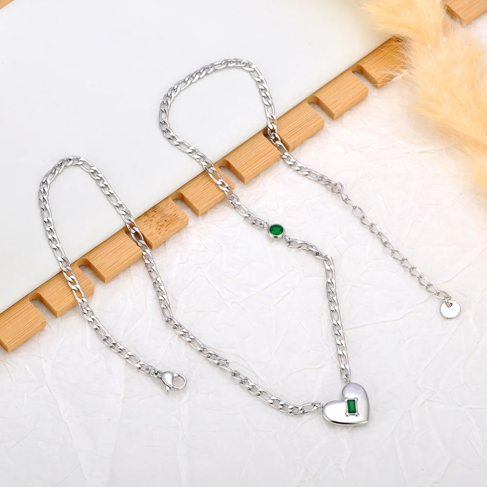 Oceľová figaro retiazka a srdce so zeleným zirkón