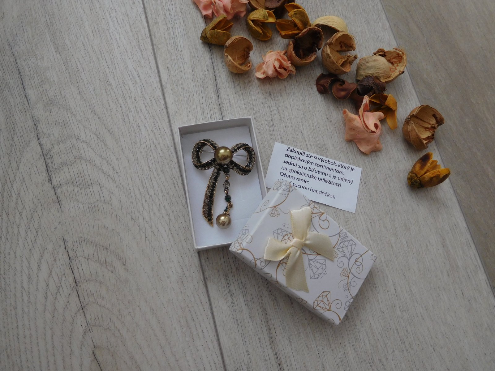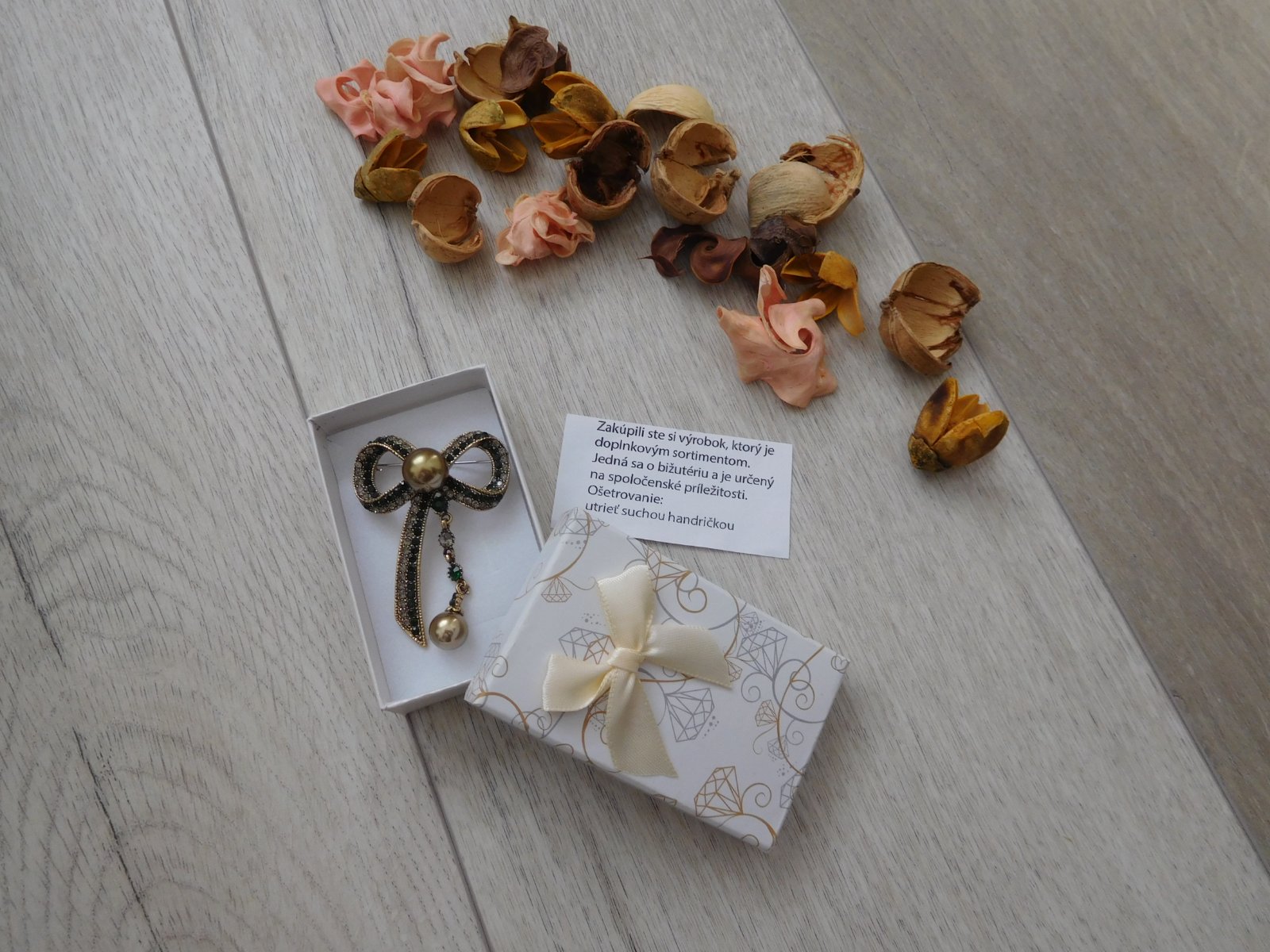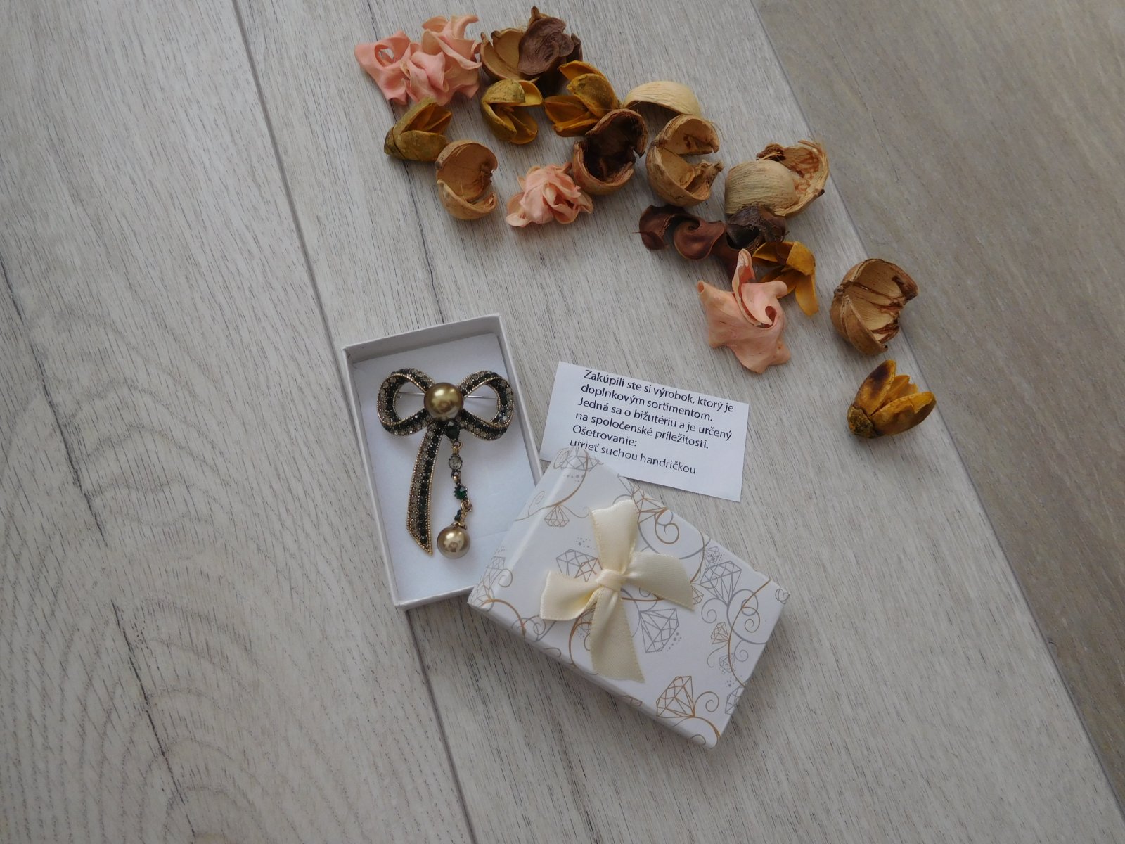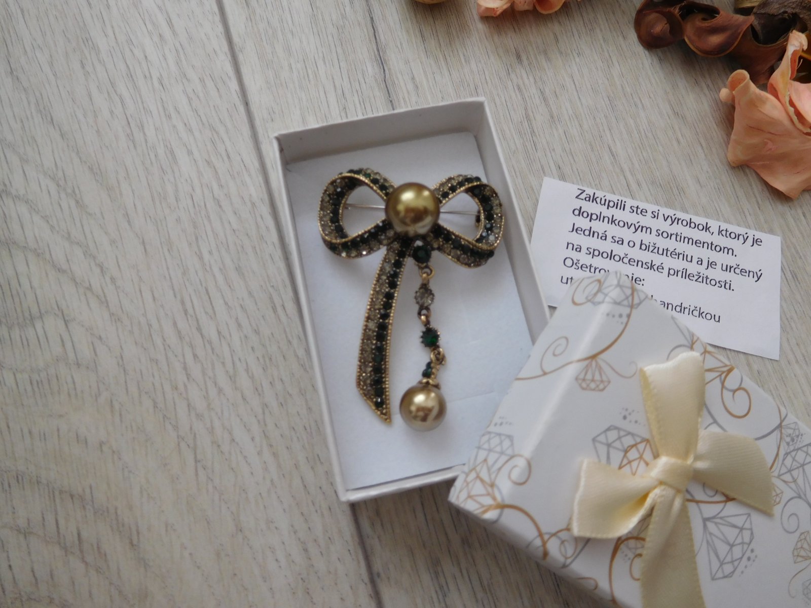 Zelená mašľa brošňa kovová +štras, NOVÁ,