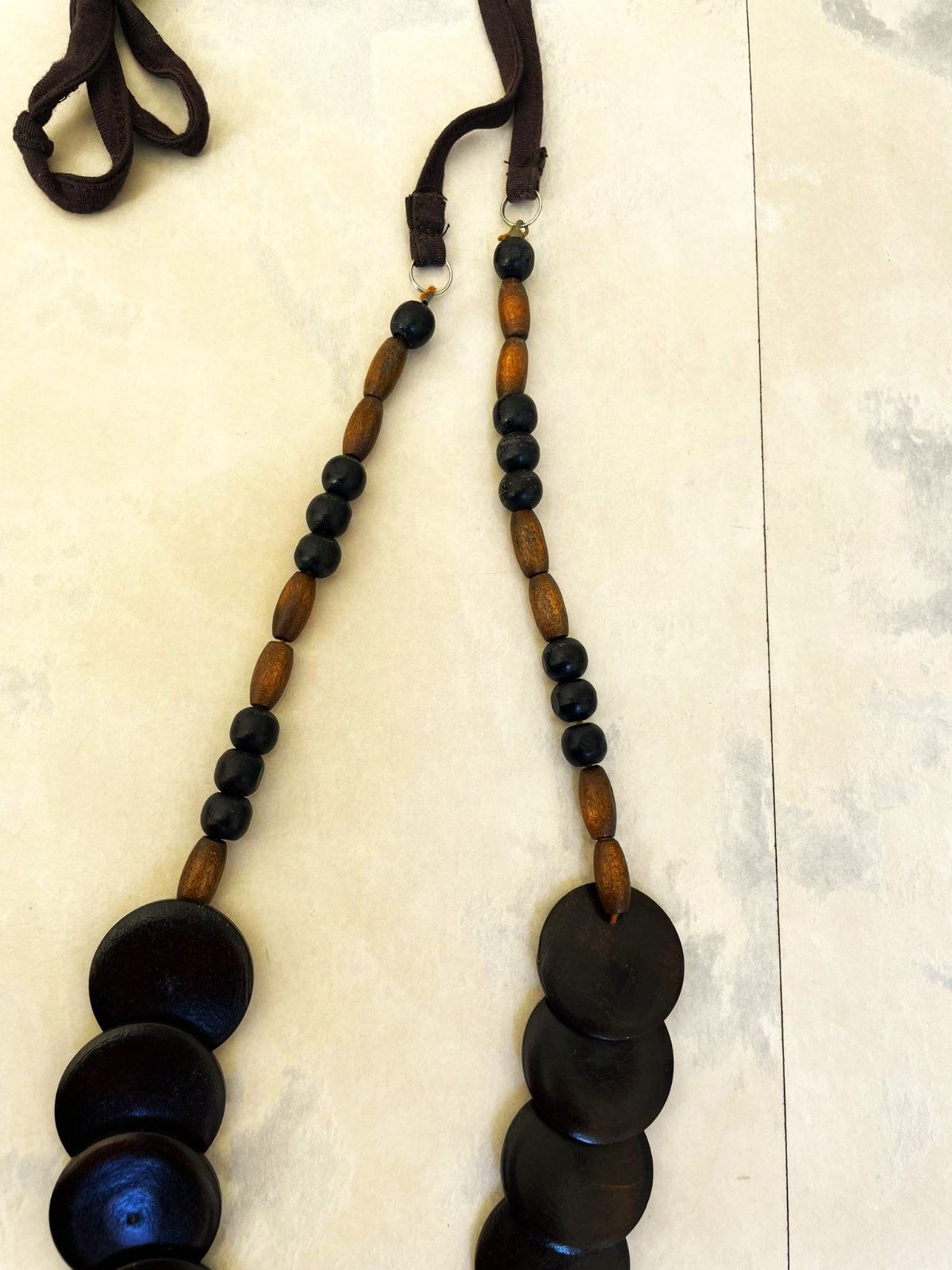 zaujímavý nosený náhrdelník,super k pleteným svetrom,šatám,ale aj inak,top stav - ako nový,upnutý na bavlnenú šnúrku,ktorý upravuje dlžku podľa potreby