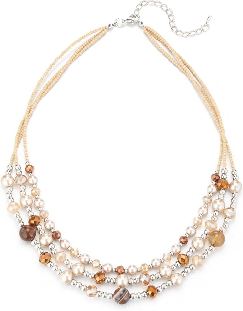 Masívnejší výrazný elegantný doplnok, viacnásobné retiazky a biele perly v rôznych veľkostiach. Bižutéria, nenosený. Rozmer:21-33 cm dĺžka/2x/.