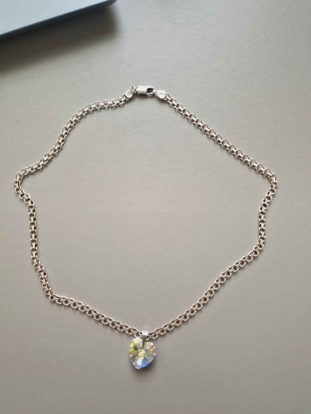 Raz použitý strieborný náhrdelník, vo výbornom stave, neopadané kamienky Dĺžka retiazky 44cm (merané po odopnutí) Výška srdiečka je 2,2 cm a šírka(hore v najširšej časti) je 2,3 cm Cena 30 e + pošt...