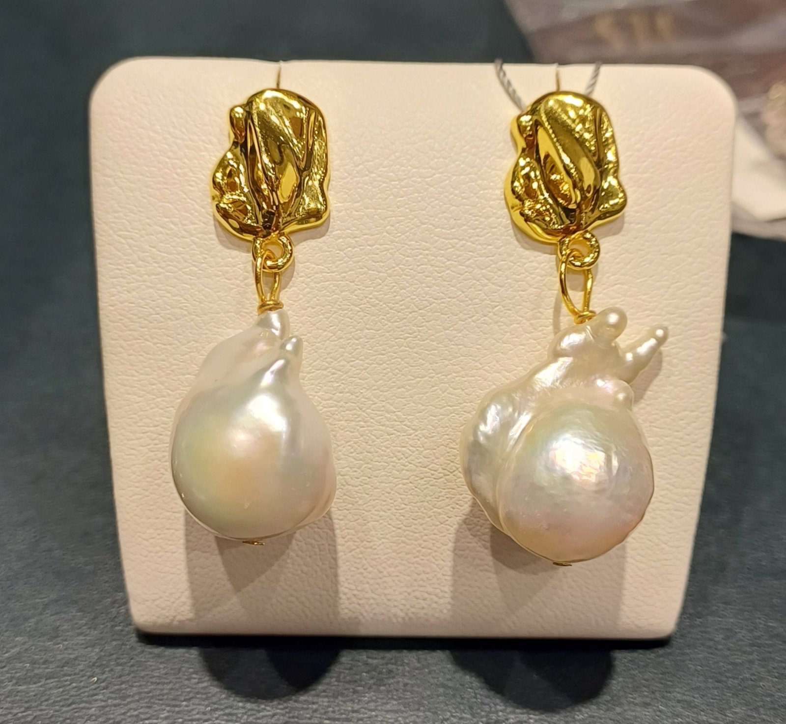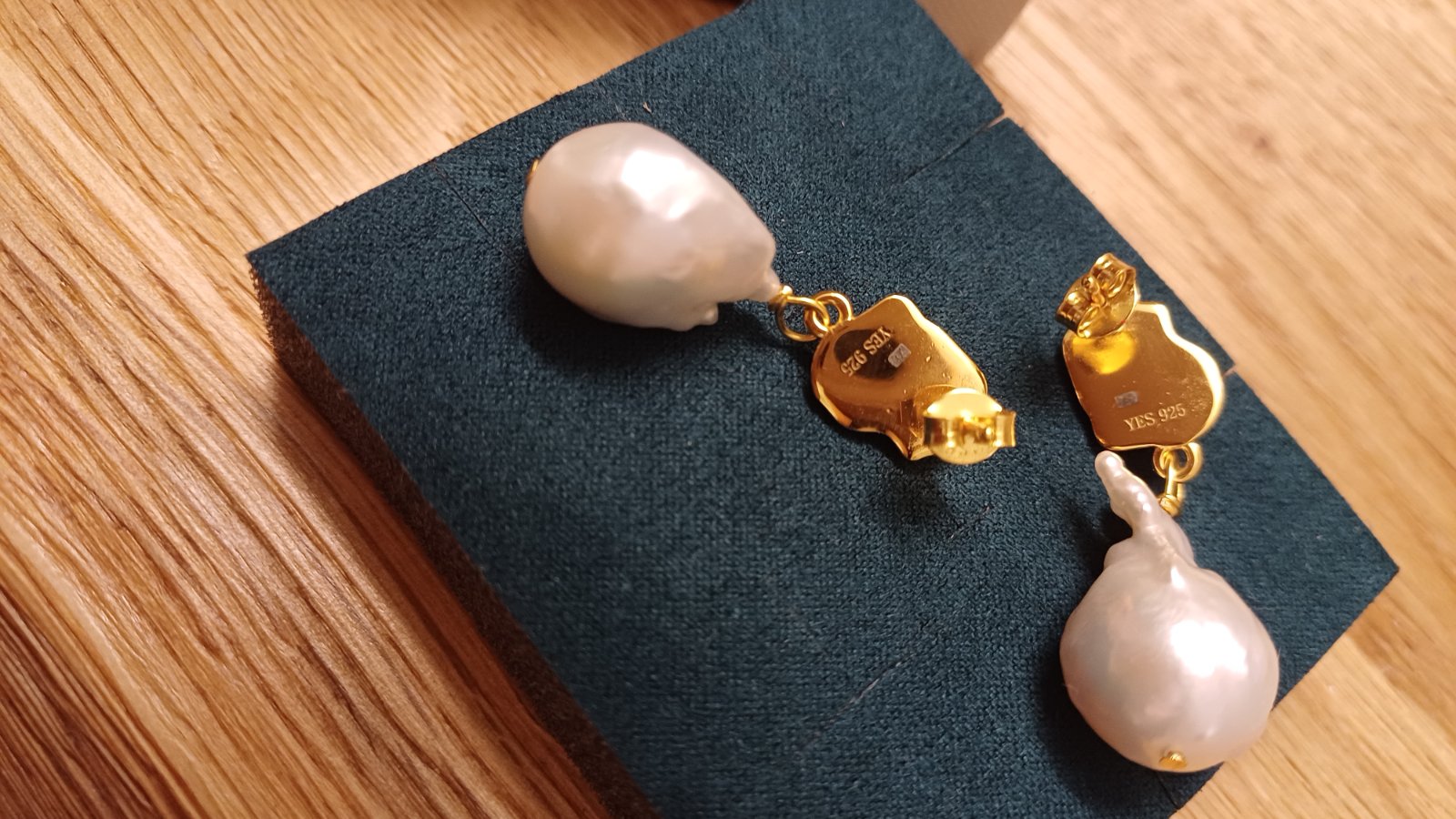Nádherné Luxusné extravagantné Perlové náušnice zo zlatnìctva YES. Materiál je striebro 925 pozlátené 14K žltým zlatom, pravé prírodné velké sladkovodné perly. Nové. Vhodné ako dar. Luxusné. Krásne.