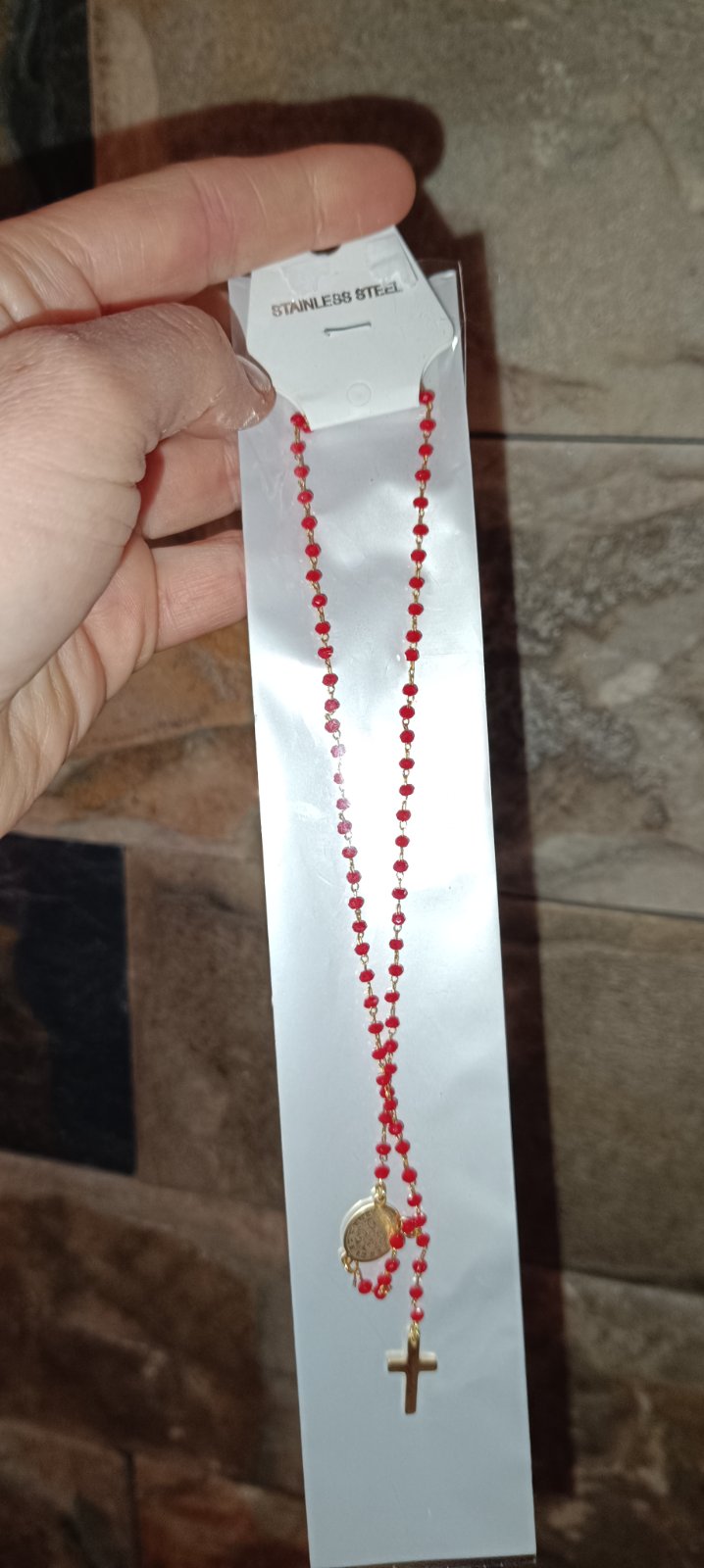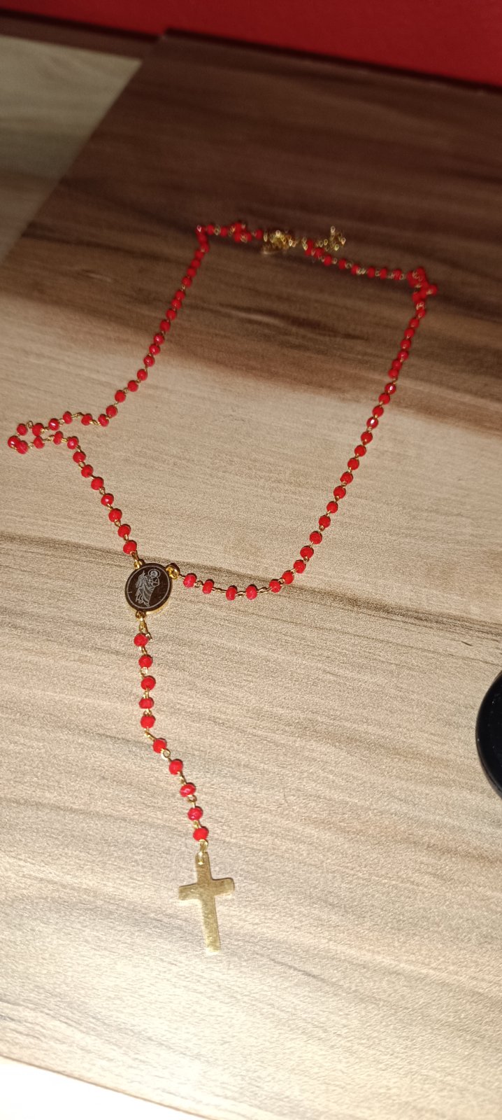 Sedasta s cervenymi koralikmi.Arujem k objednavke nad 4 Eur
