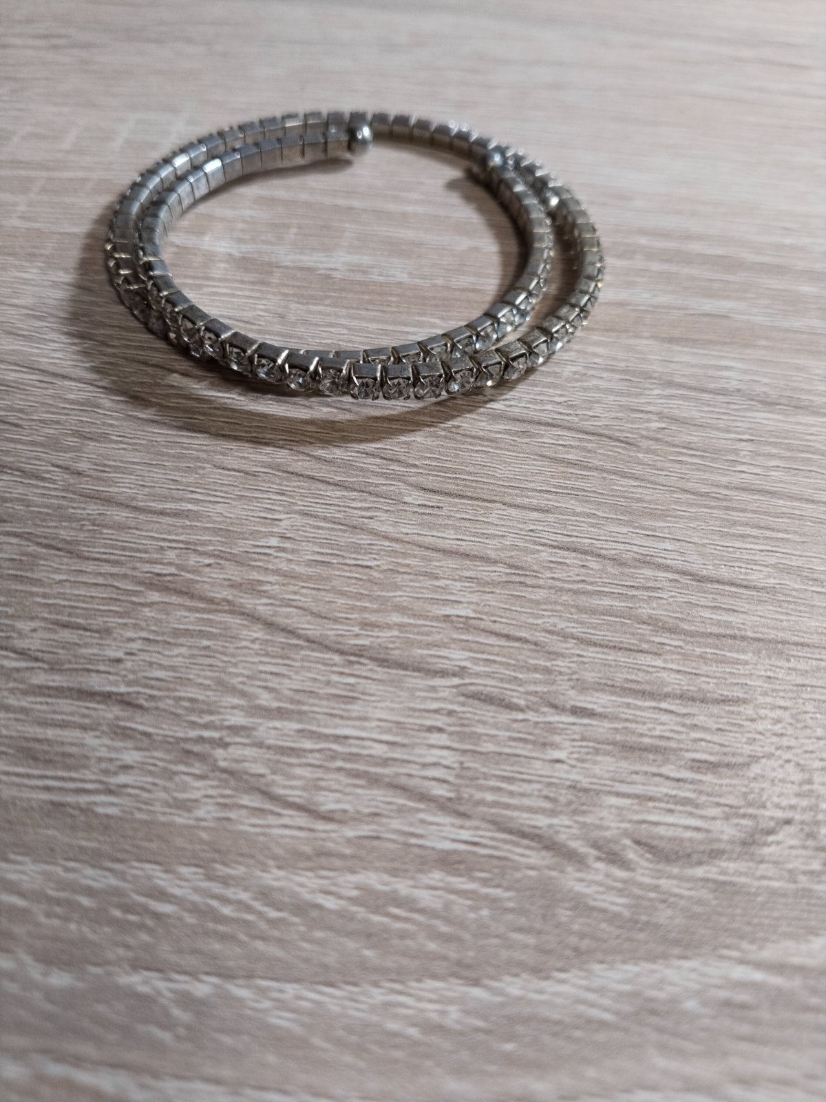 Náramok akvamarín. Kov je chirurgická oceľ. Dĺžka od zapínania po prvý krúžok je 18,2 cm. Celkovo má 20,5 cm.