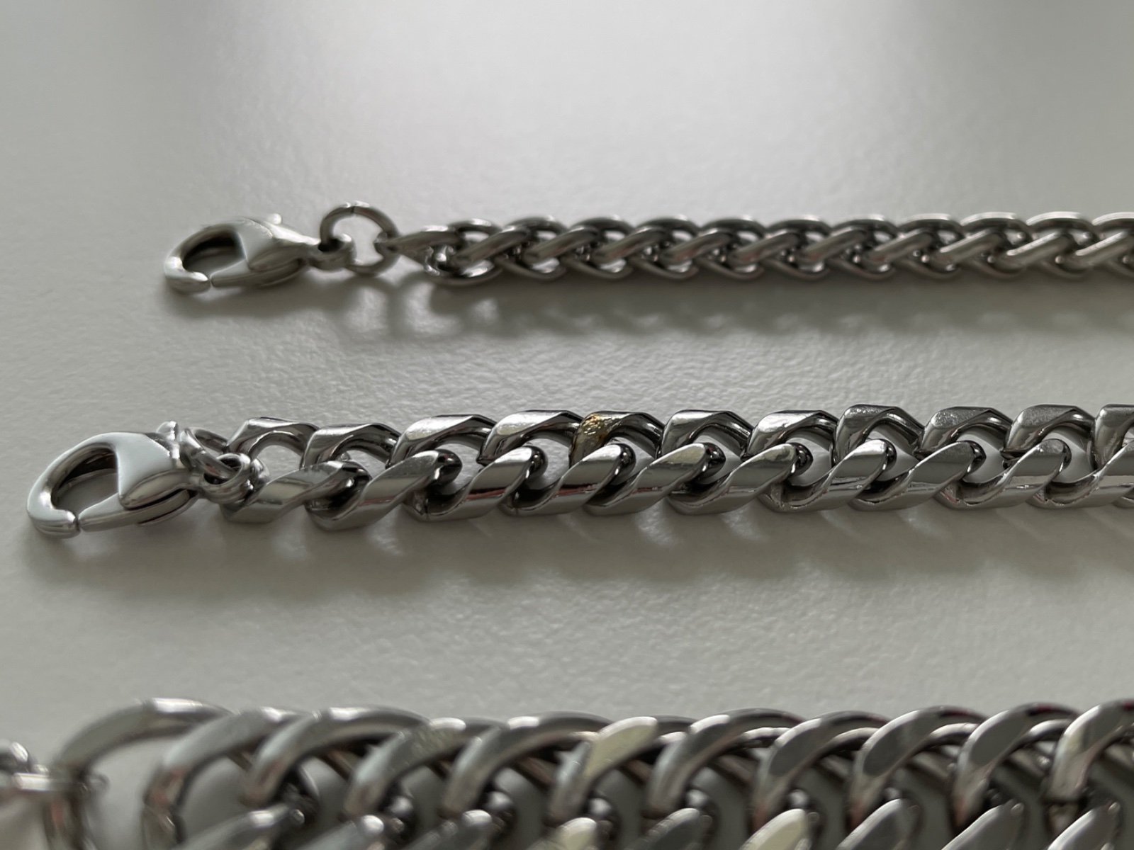 Predám 3 nenosené kovové náramky s karabínkovým zapínaním. Dĺžka 19 cm.