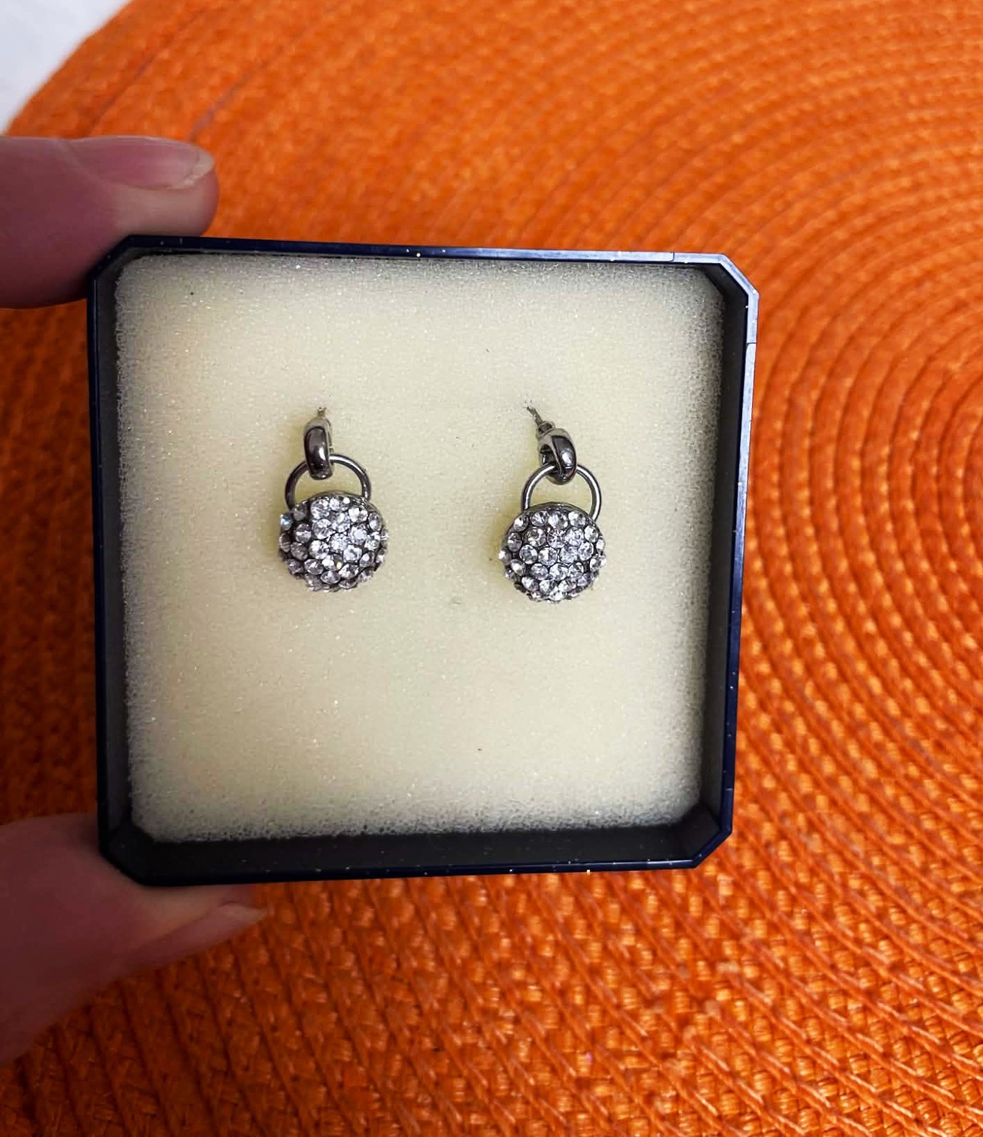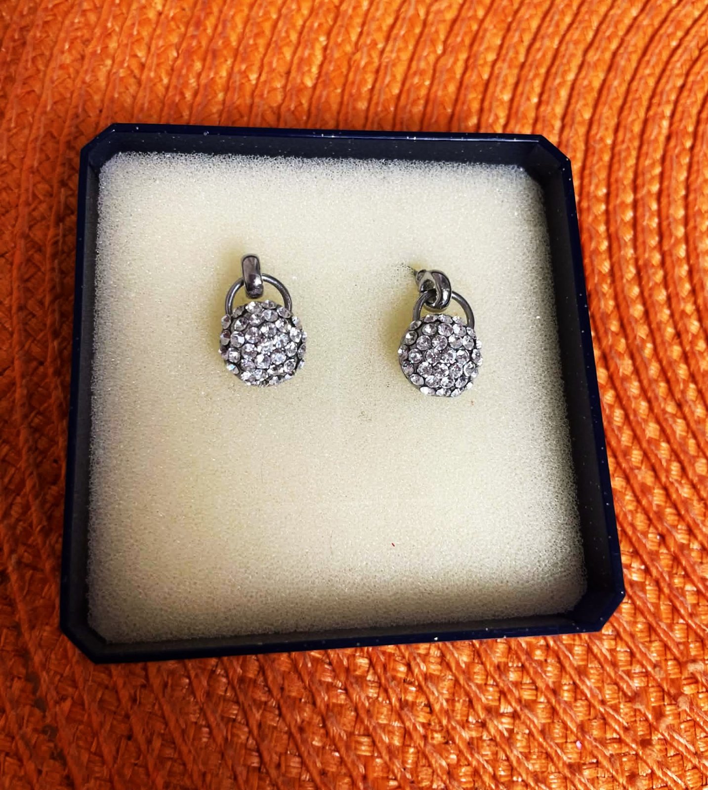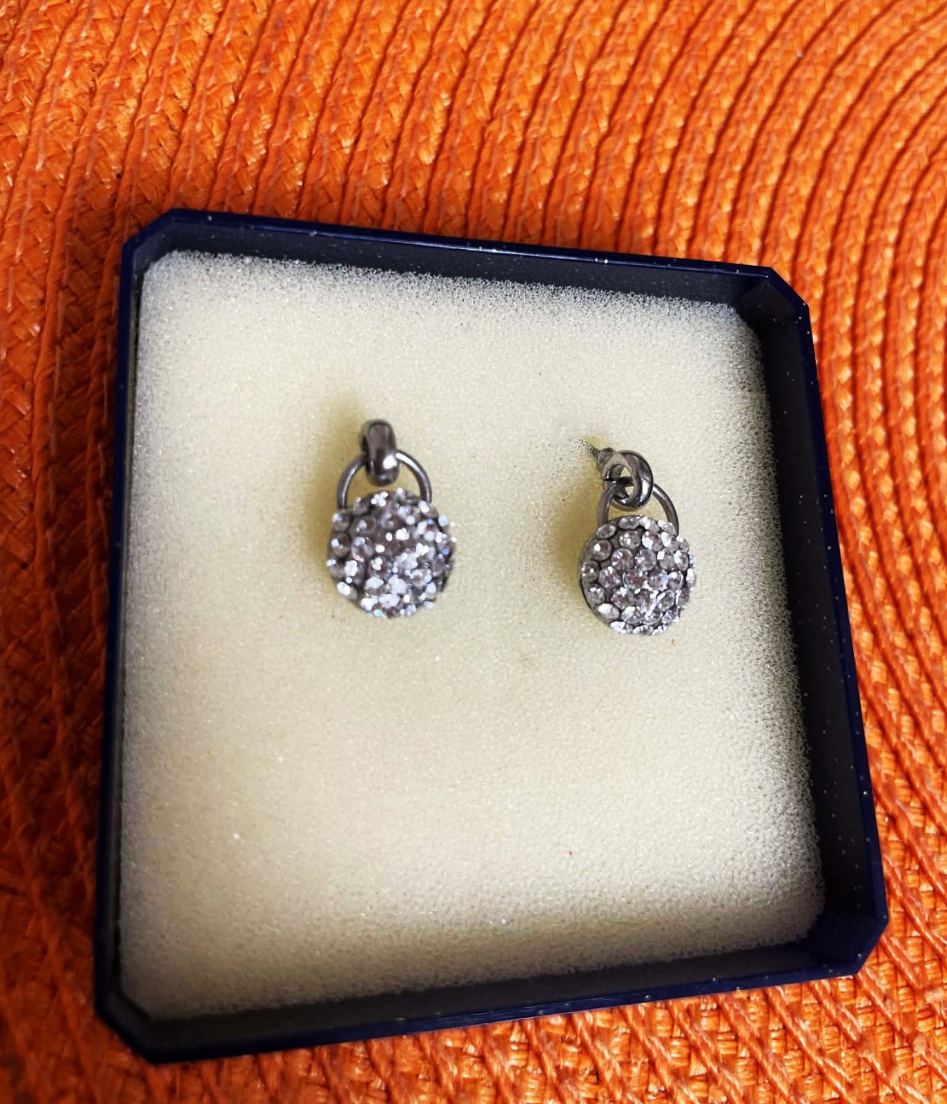 osadené mnohými drobnými čírymi kamienkami,nie je to striebro,ale kvalitná bižutéria,top stav,priemer = 1 cm