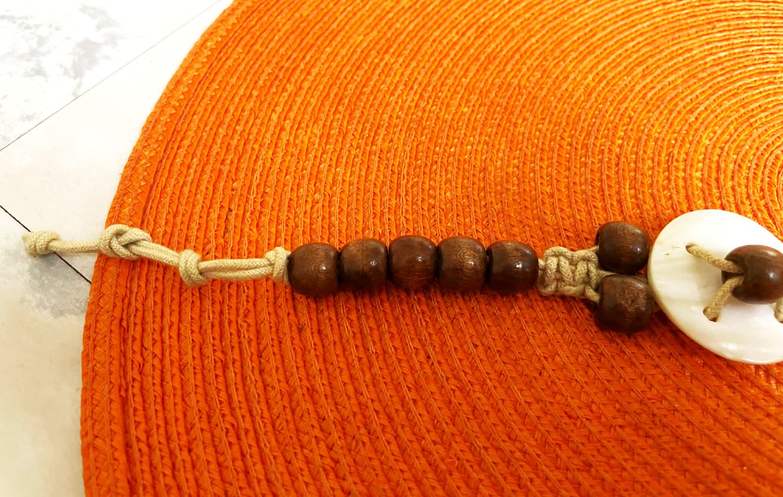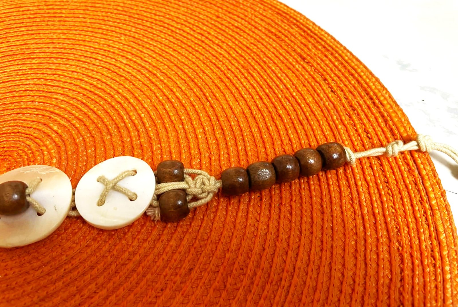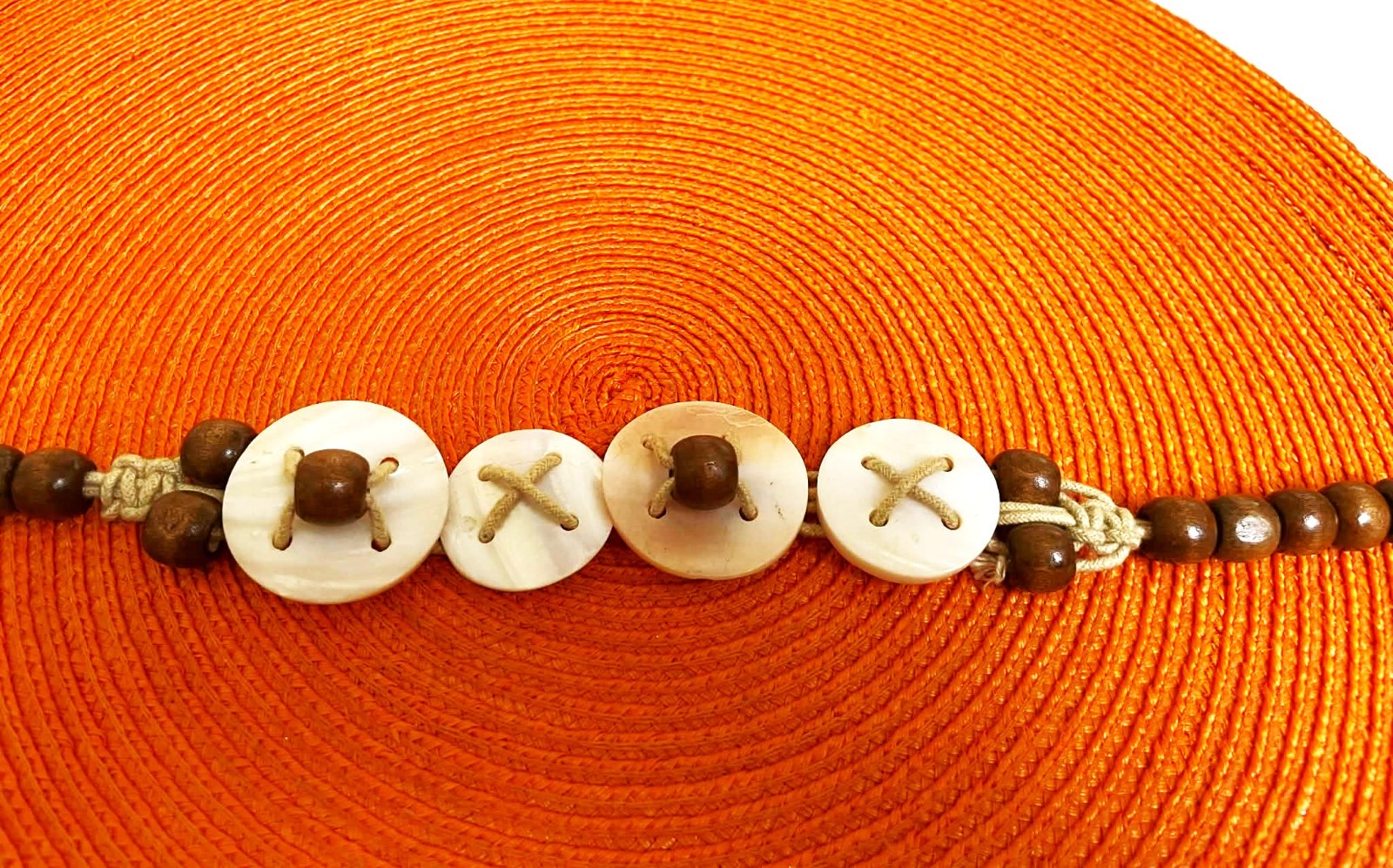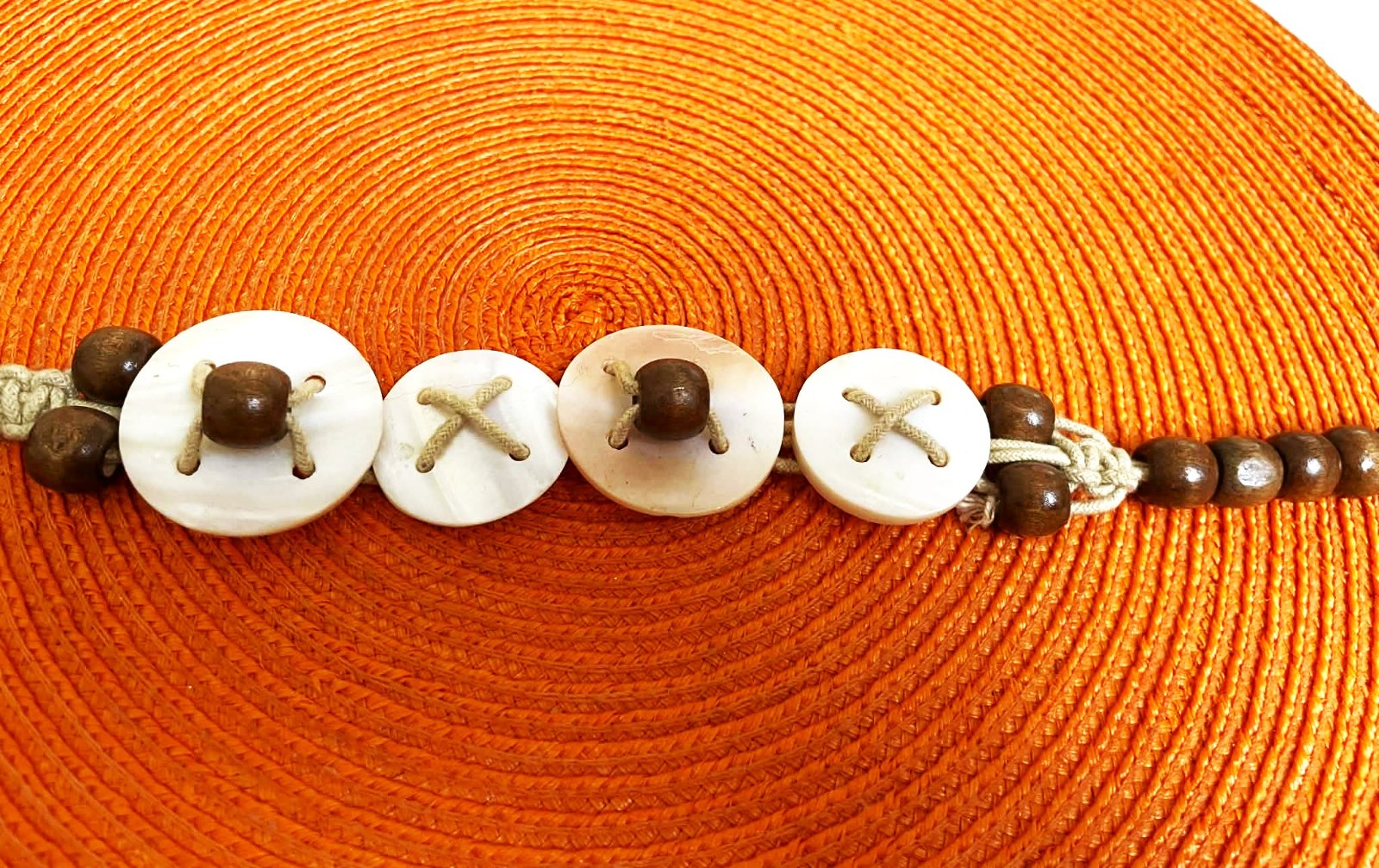 nezvyčajný obojok na krk dovezený z Talianska,z naturálnych materiálov,juta,perleťové gombíky,drevené korálky,top doplnok,dlžka = 43/44 cm, priemer najväčšieho gombíka = 4 cm