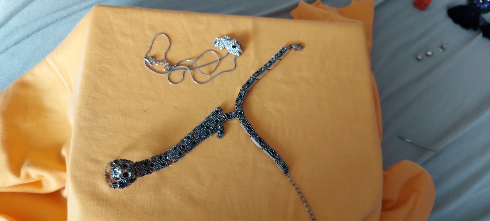 Predám prsteň ktorý sa upevní okolo zápästia a retiazku s príveskom. Cena spolu 2 eura plus pošta.
