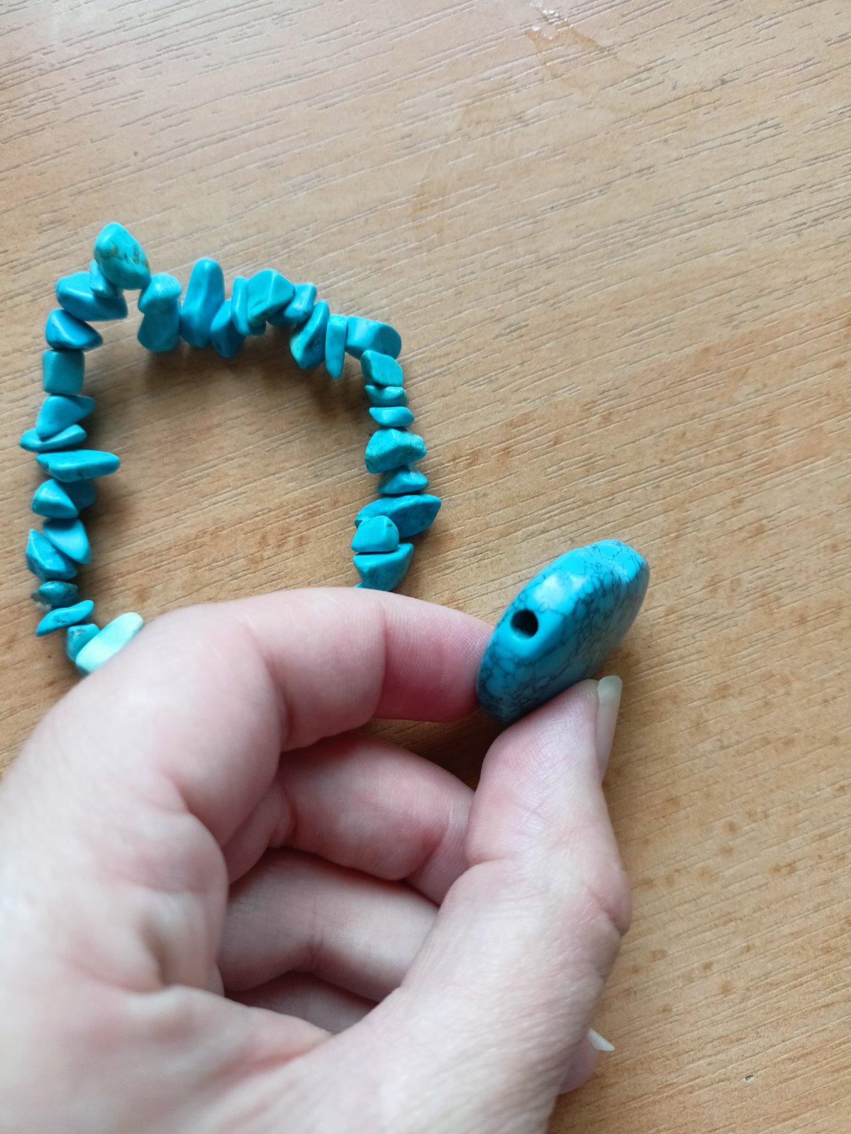 Predám prívesok a náramok z tyrkenitu, prívesok je zboku vŕtaný.