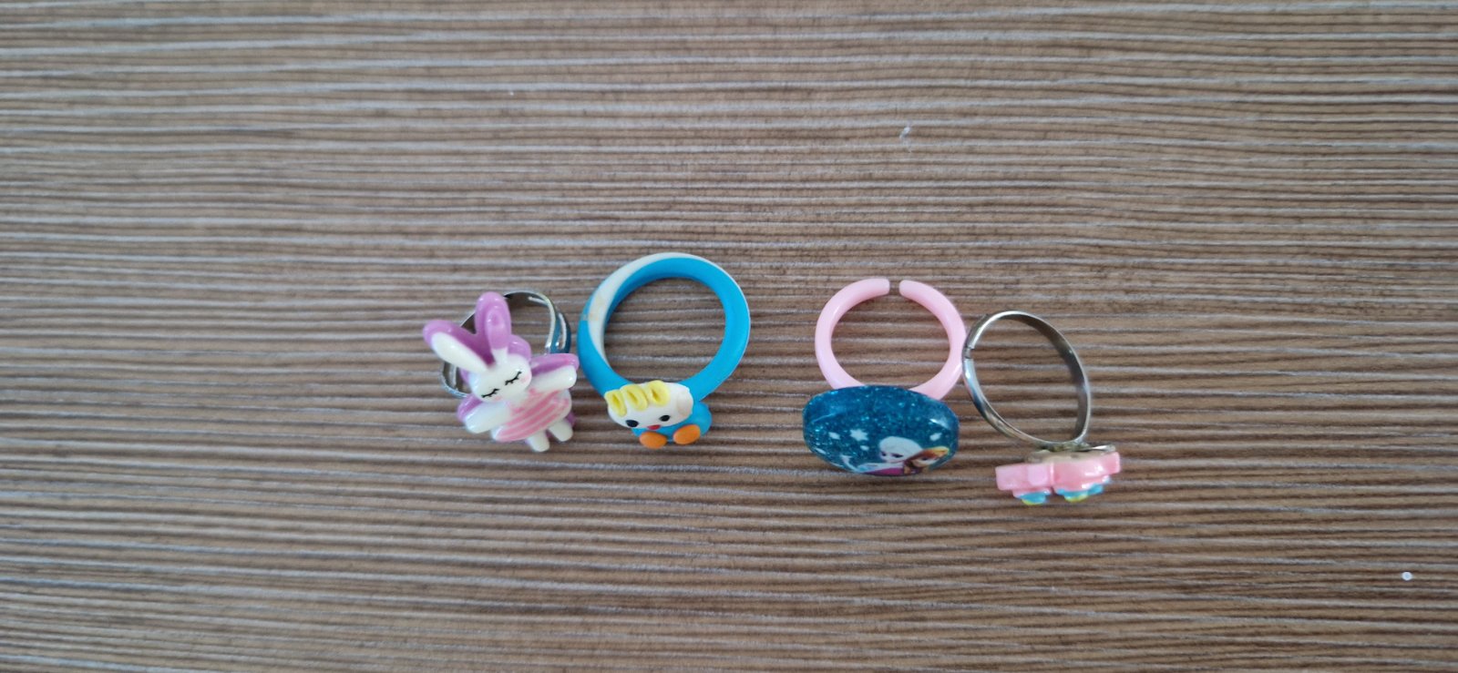 Cena je uvedená za všetky.Nosené no stále pekne, 2 najtenšie z nich sú za 6e,ďalšie 2 hrubsie za 7e, atd.Ten tenucký-druhý sprava už nie je. A treti,šiesty zľava je rezervovany.