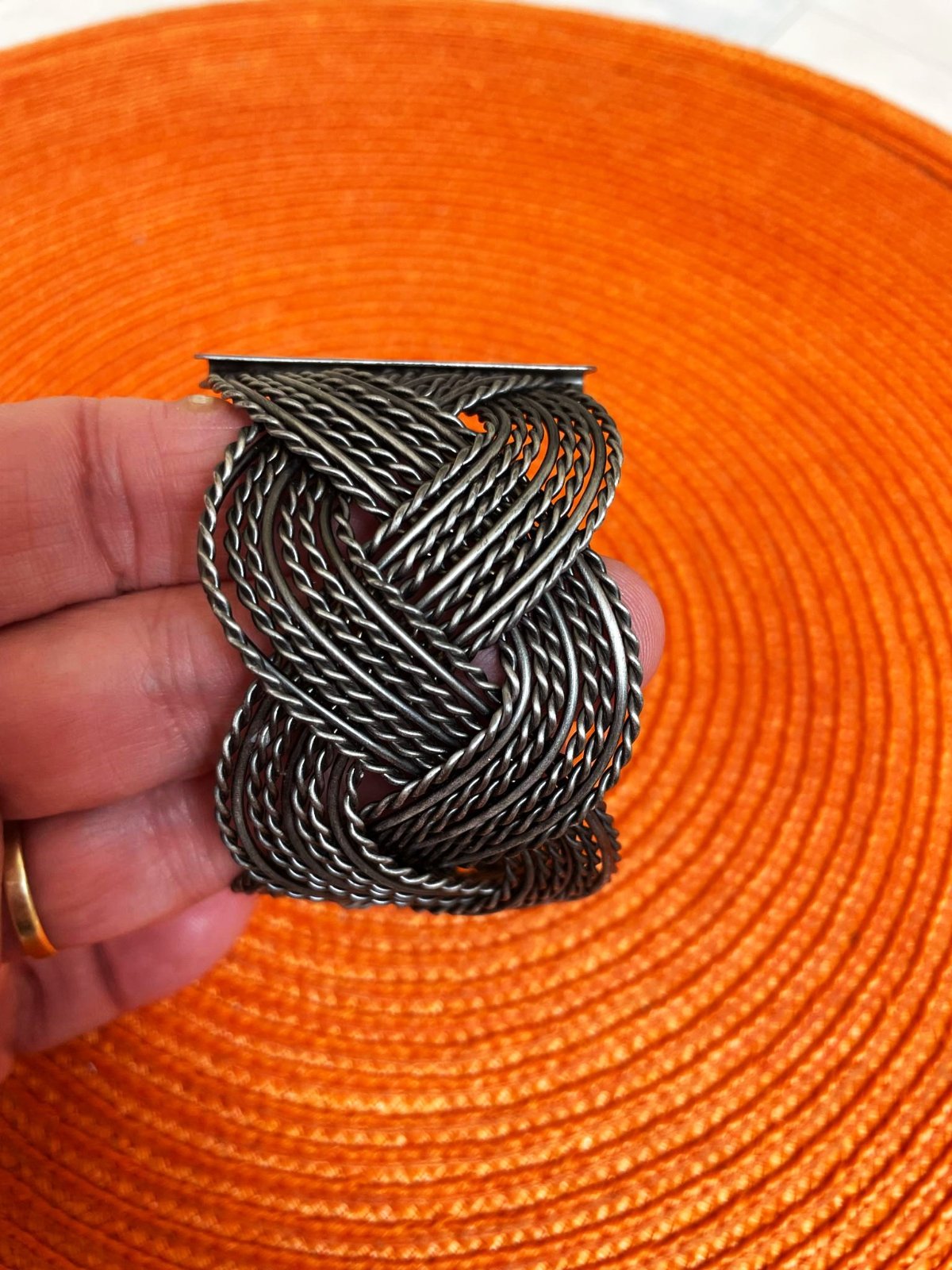 krásny výplet,nastaviteľná šírka,kovový ľahký materiál,veľmi zaujímavý,pozri k tomu aj náušnice :