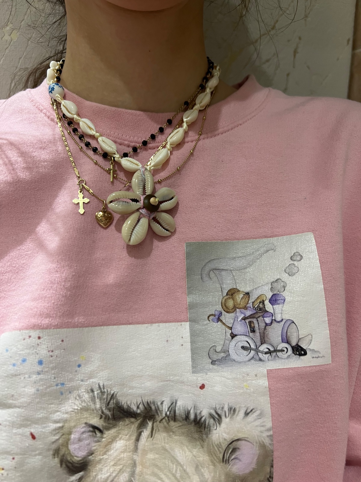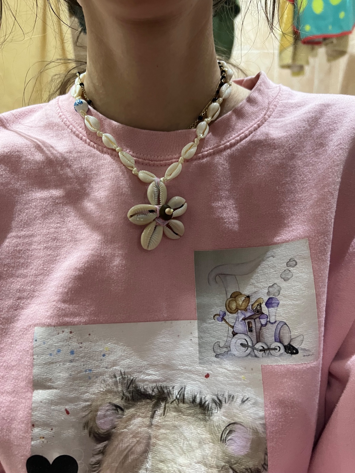 Náhrdelník z malých mušlí a s príveskom kvetinkou