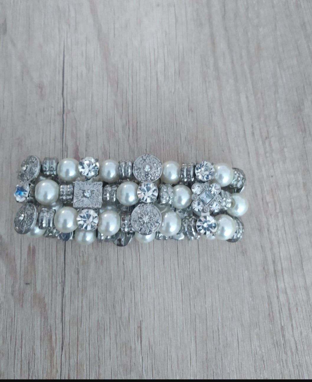 Predám tieto dva náramky pre družičky alebo pre svadobné mamy, sú čisto nové nepoužité. Cena za jeden 1,50€.