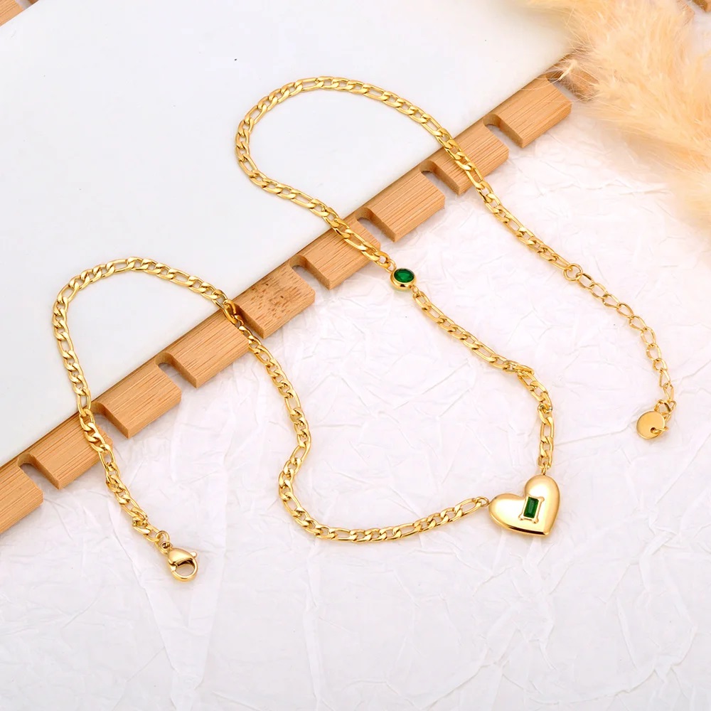 materiál: chirurgická oceľ, dĺžka retiazky: 47cm, prívesok v tvare srdiečka s malým zeleným zirkónom