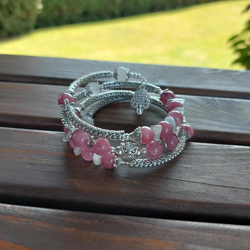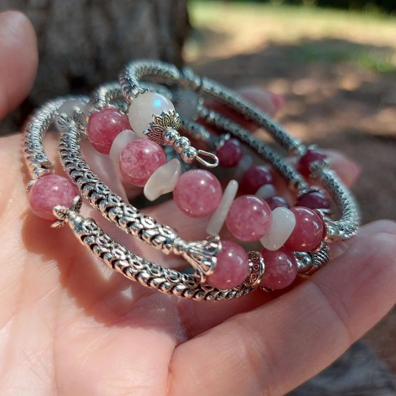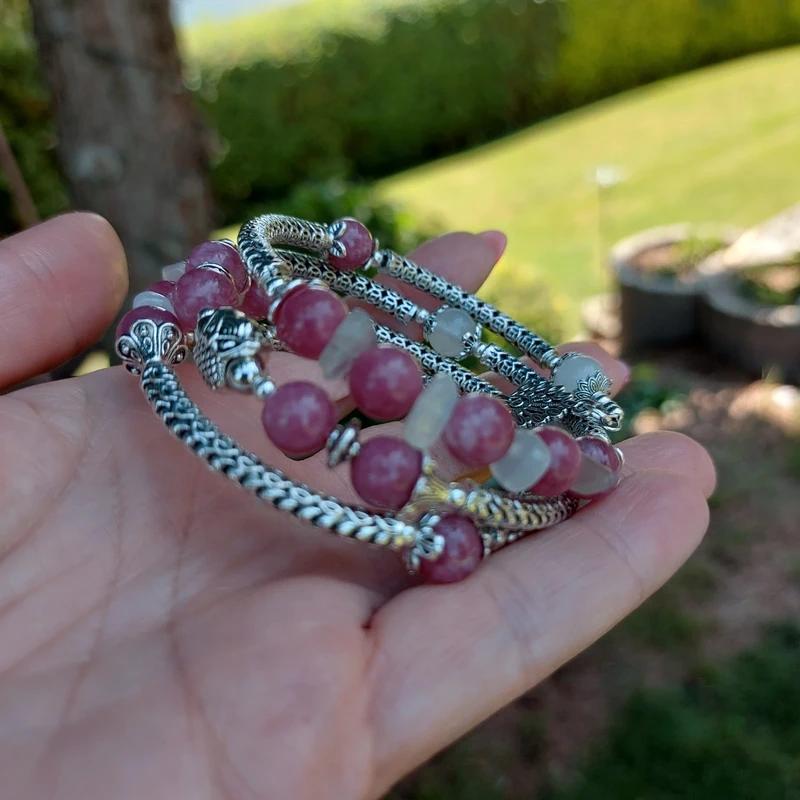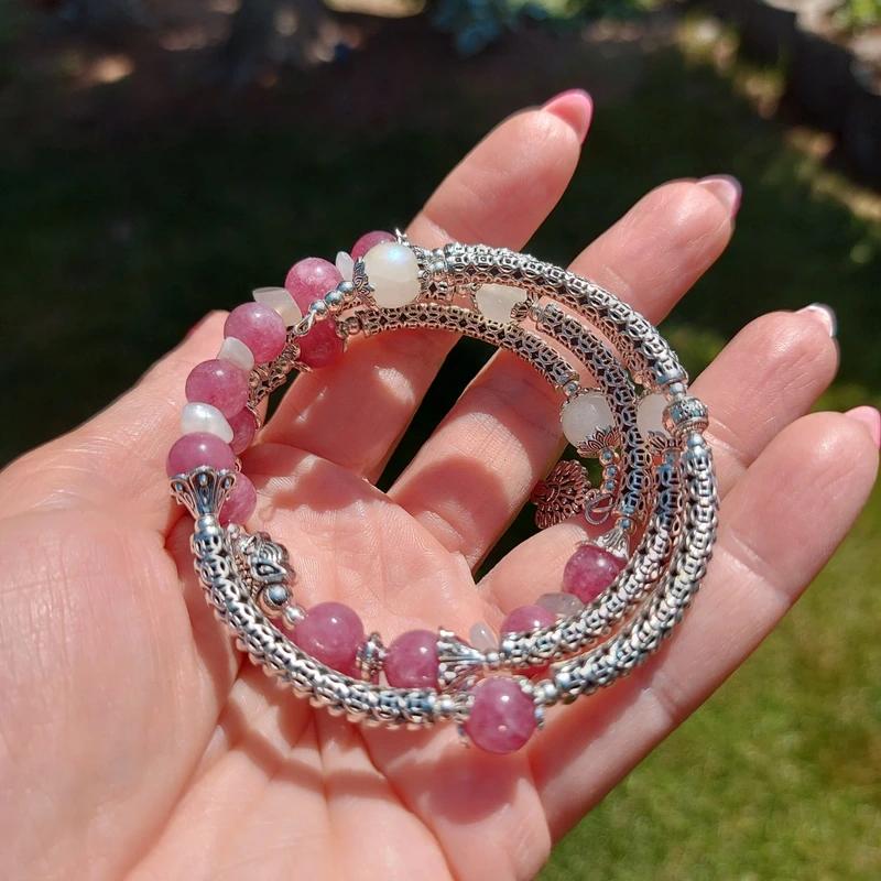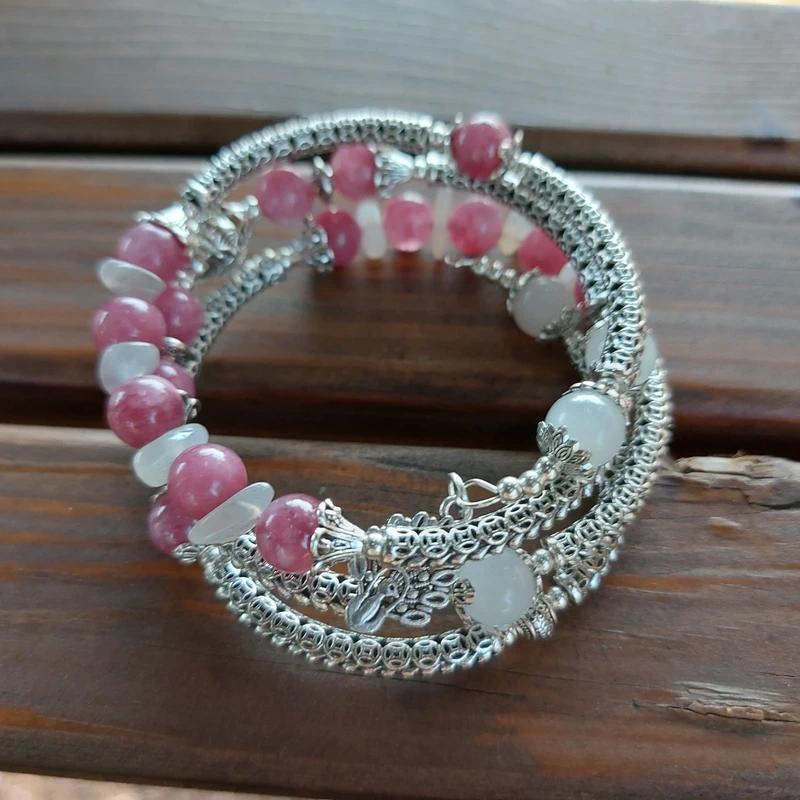 Keď sa spojí nežný Lepidolit (minerál pokoja) s magickým mesačným kameňom, vznikne náramok, ktorý ti bude ladiť nielen k outfitu, ale aj k duši. 💫 Navliekla som ho na nekonečný drôt – takže žiadne slabé uzlíky, drží pevne a je pripravený zvládnuť každý tvoj deň.