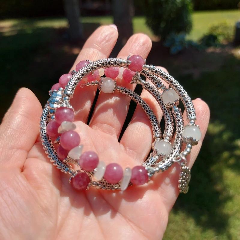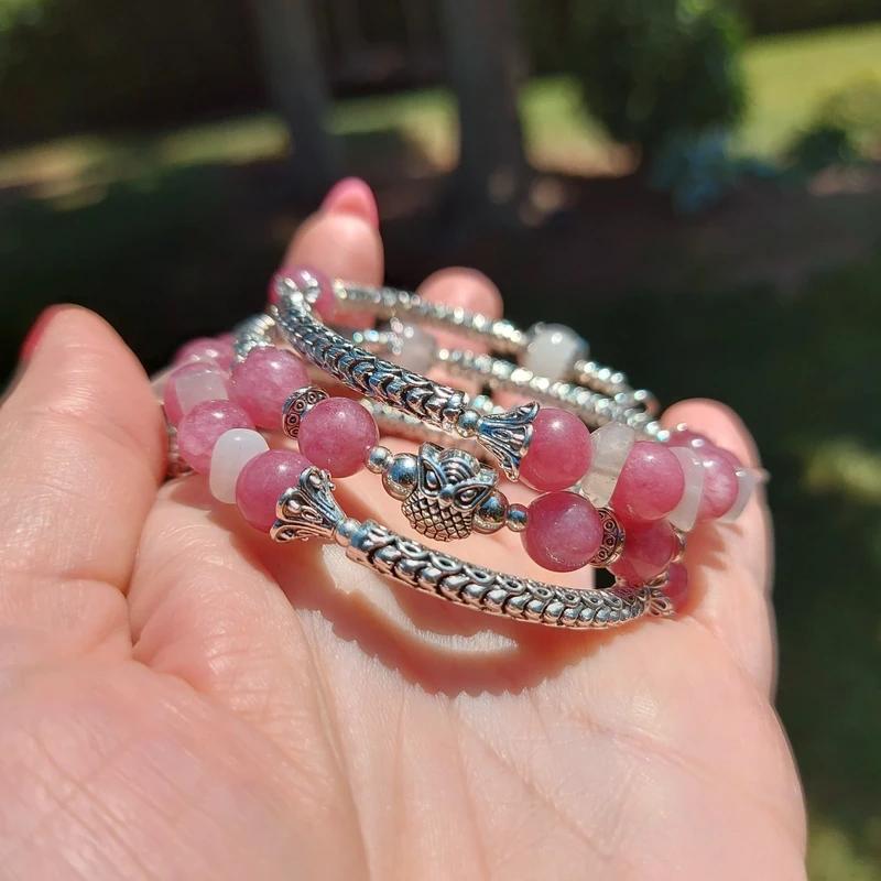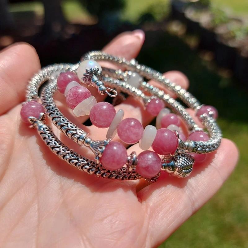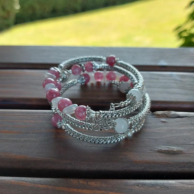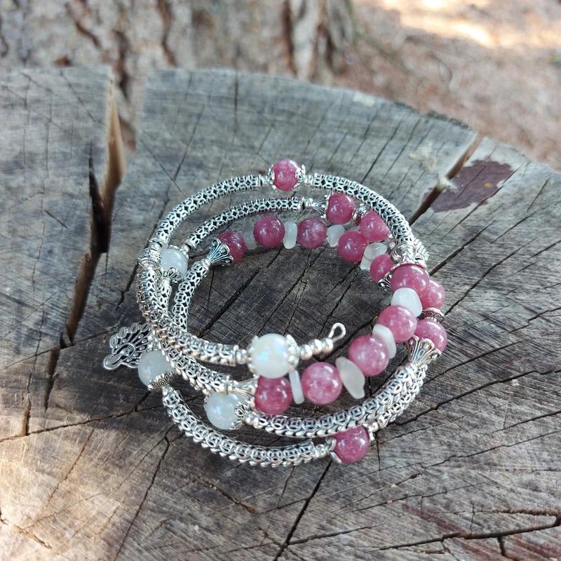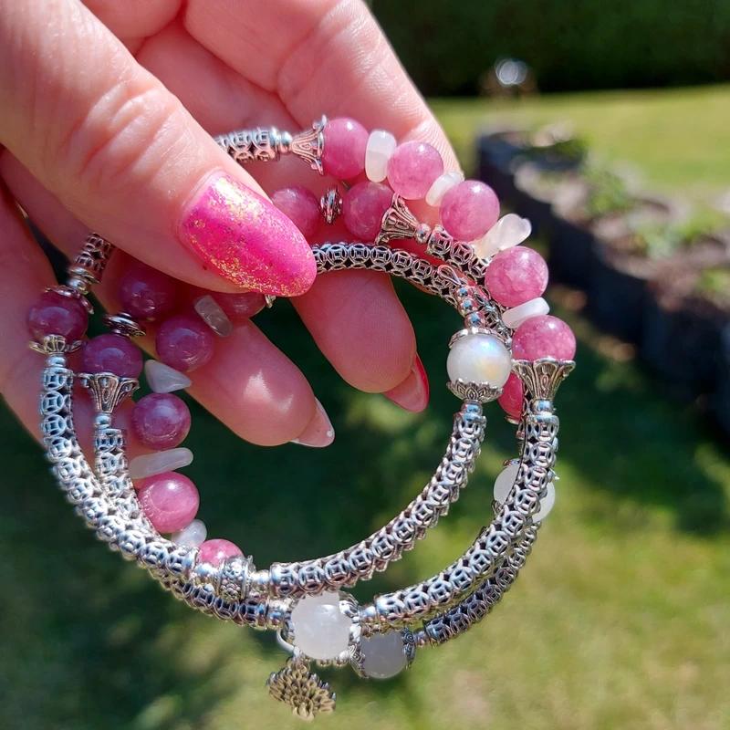 Keď sa spojí nežný Lepidolit (minerál pokoja) s magickým mesačným kameňom, vznikne náramok, ktorý ti bude ladiť nielen k outfitu, ale aj k duši. 💫 Navliekla som ho na nekonečný drôt – takže žiadne slabé uzlíky, drží pevne a je pripravený zvládnuť každý tvoj deň.