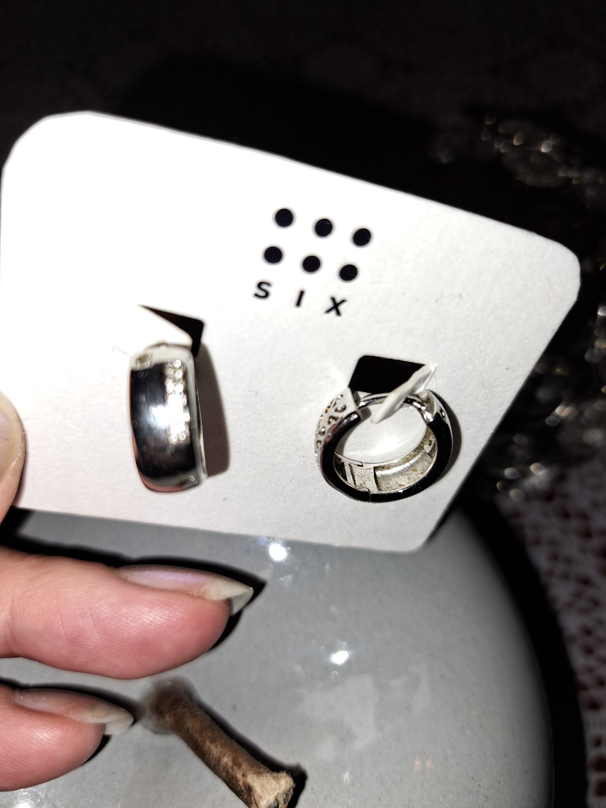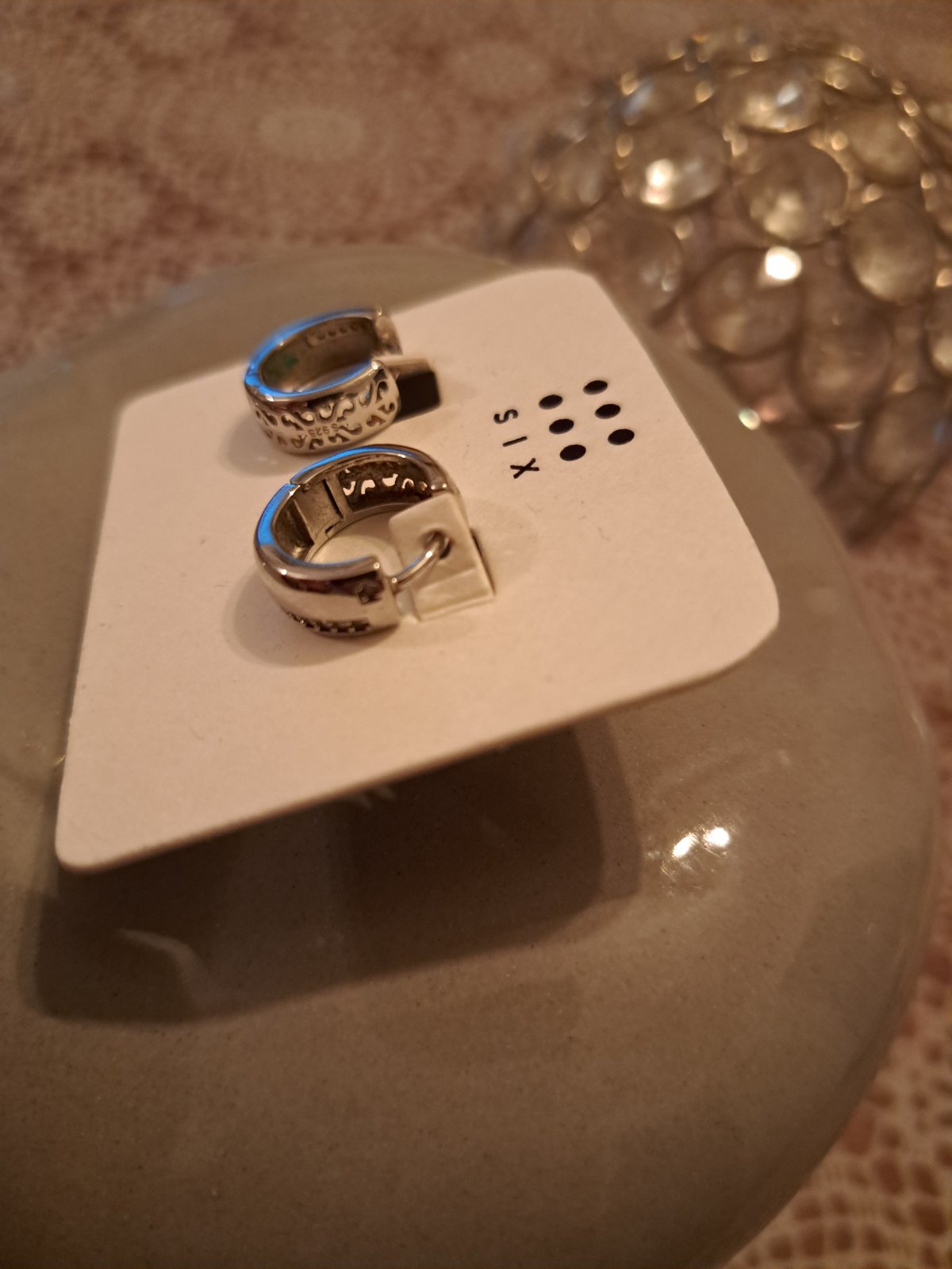 Postriebrené rhodiované náušničky z chirurgickej ocele so zirkónmi. Nové, dajú sa nosiť obojstranne, aj vzorovanou časťou vpred.
