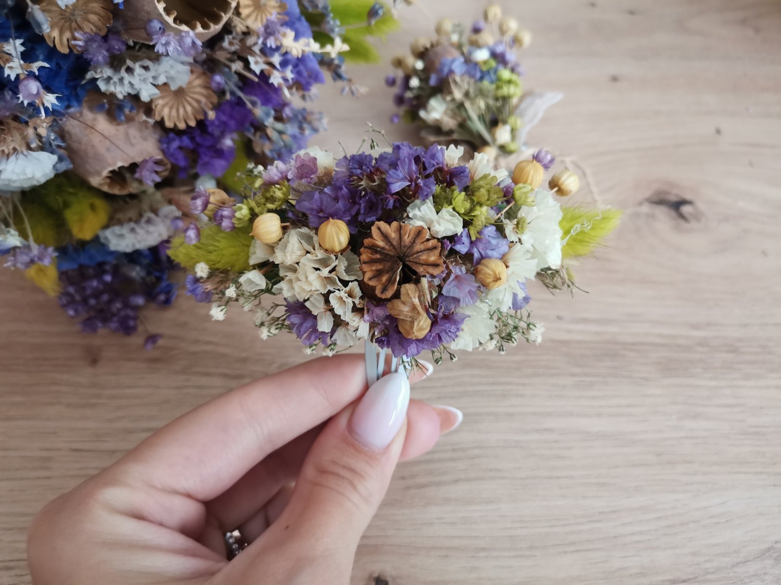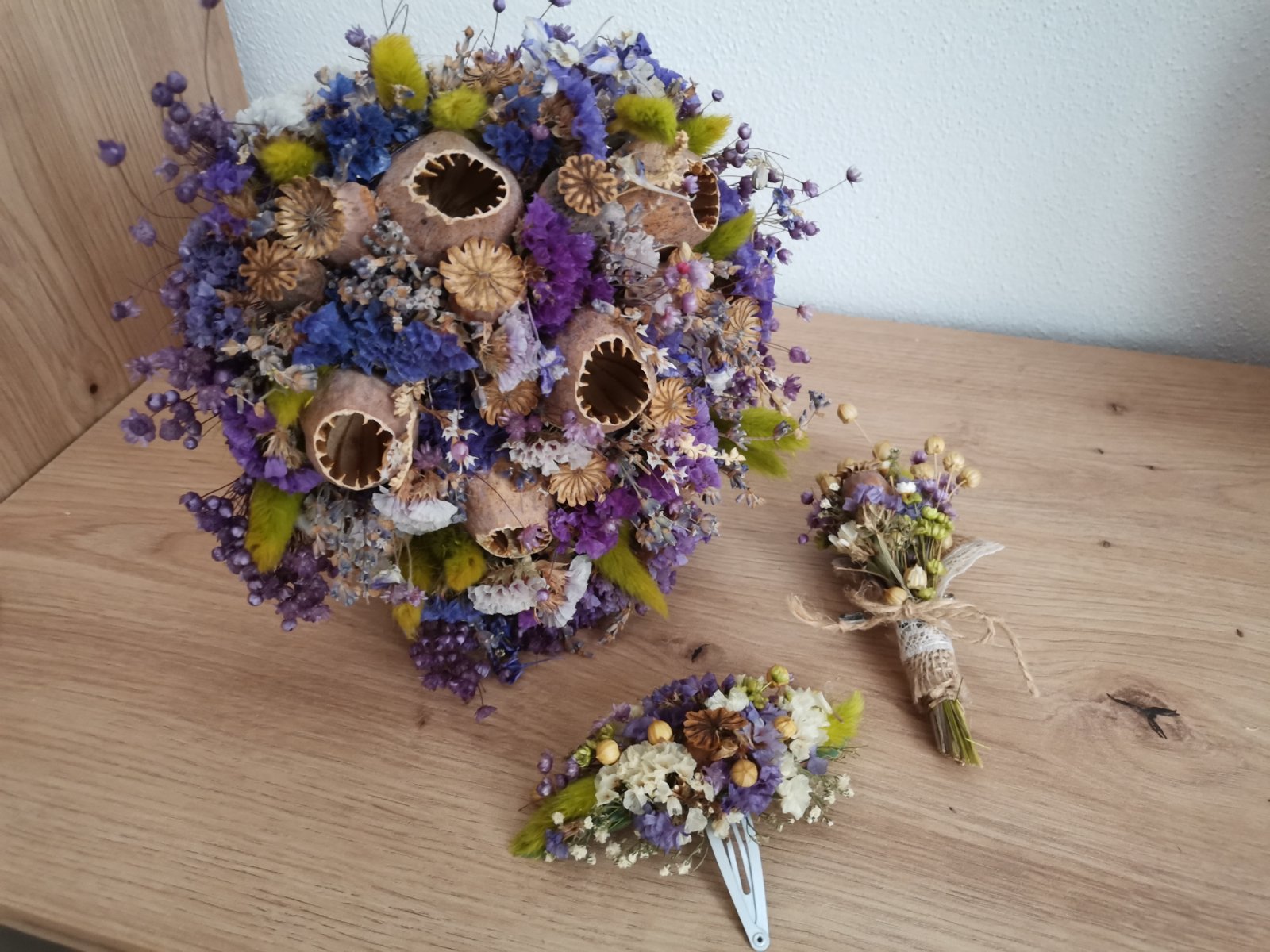 SkladomPredám tento krásny svadobný set (svadobna kyticka previazana bielou krajkou, pierko pre ženícha a pukacka do vlasov)