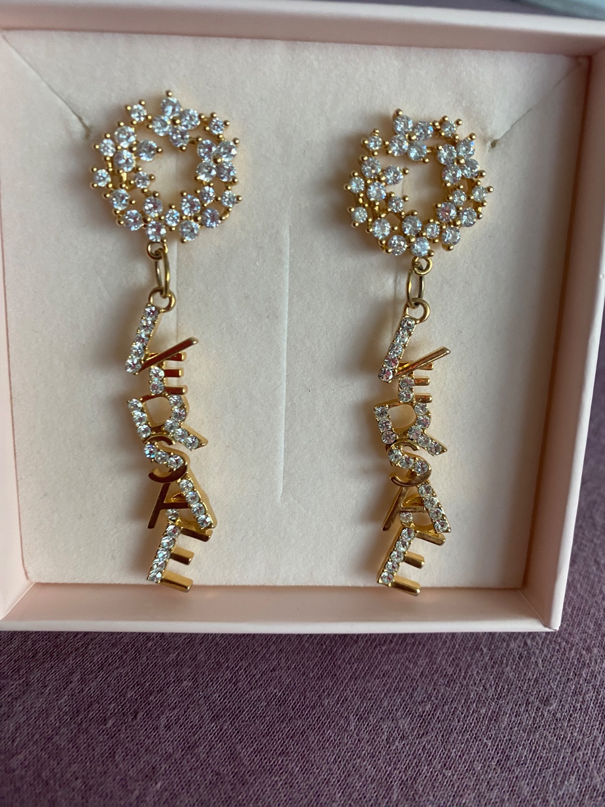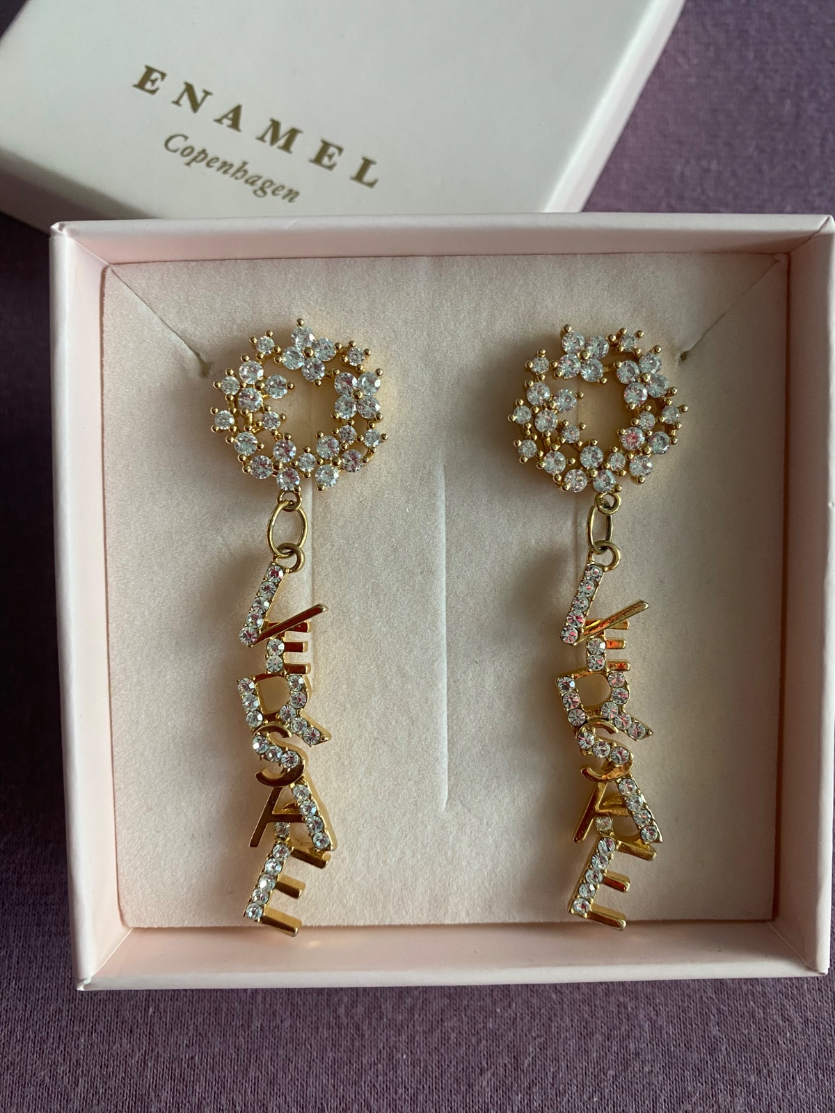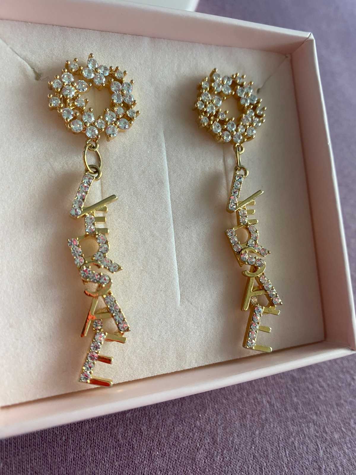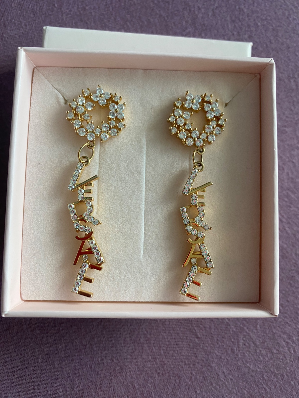 Štylove naušnice, par krat použite versace v zlatej farbe, číre zirkony a napichovanie striebro S925 vid. foto.