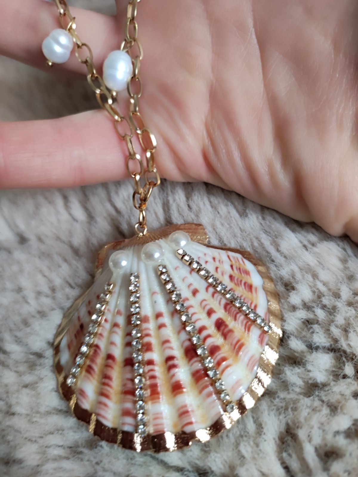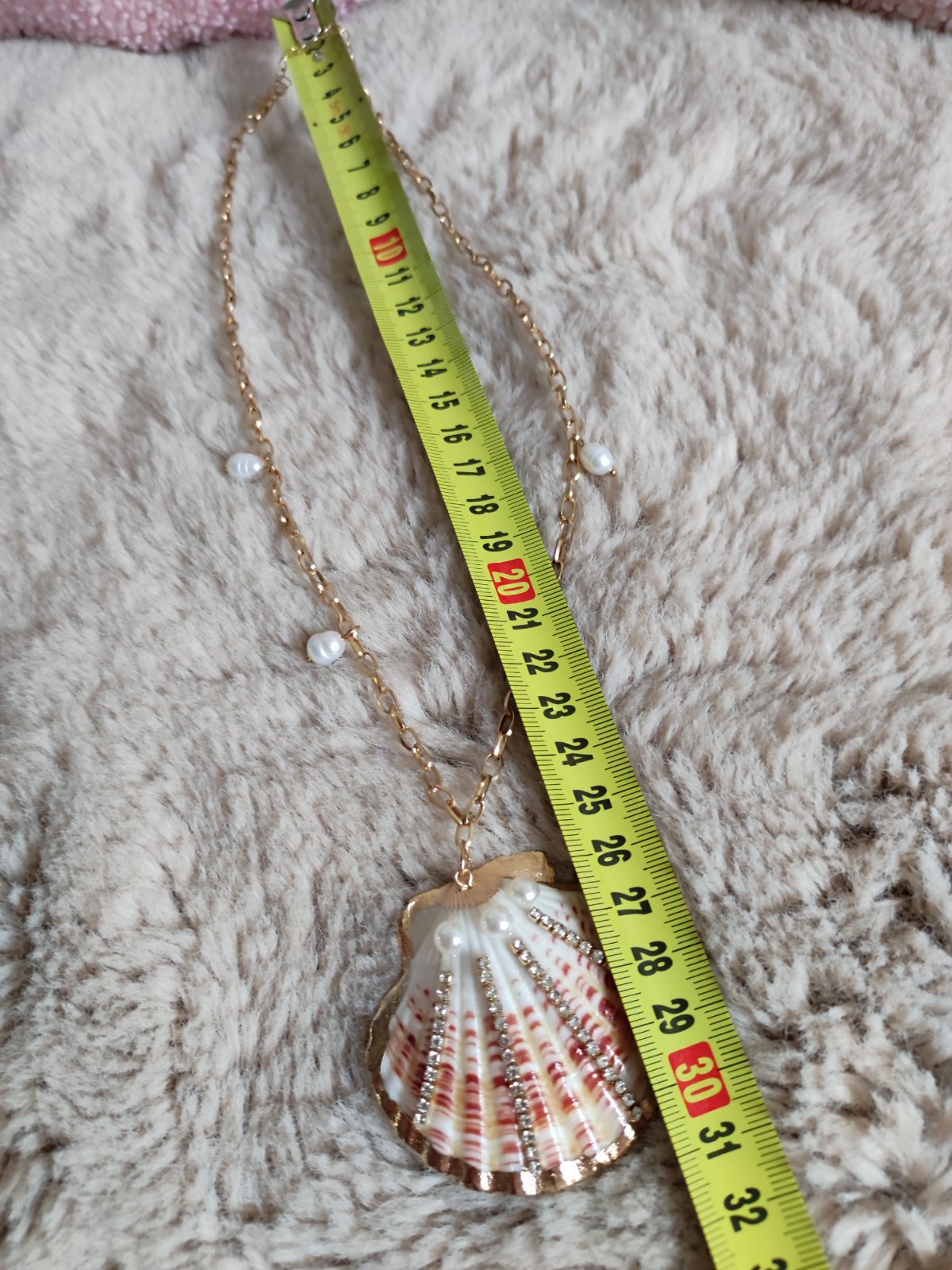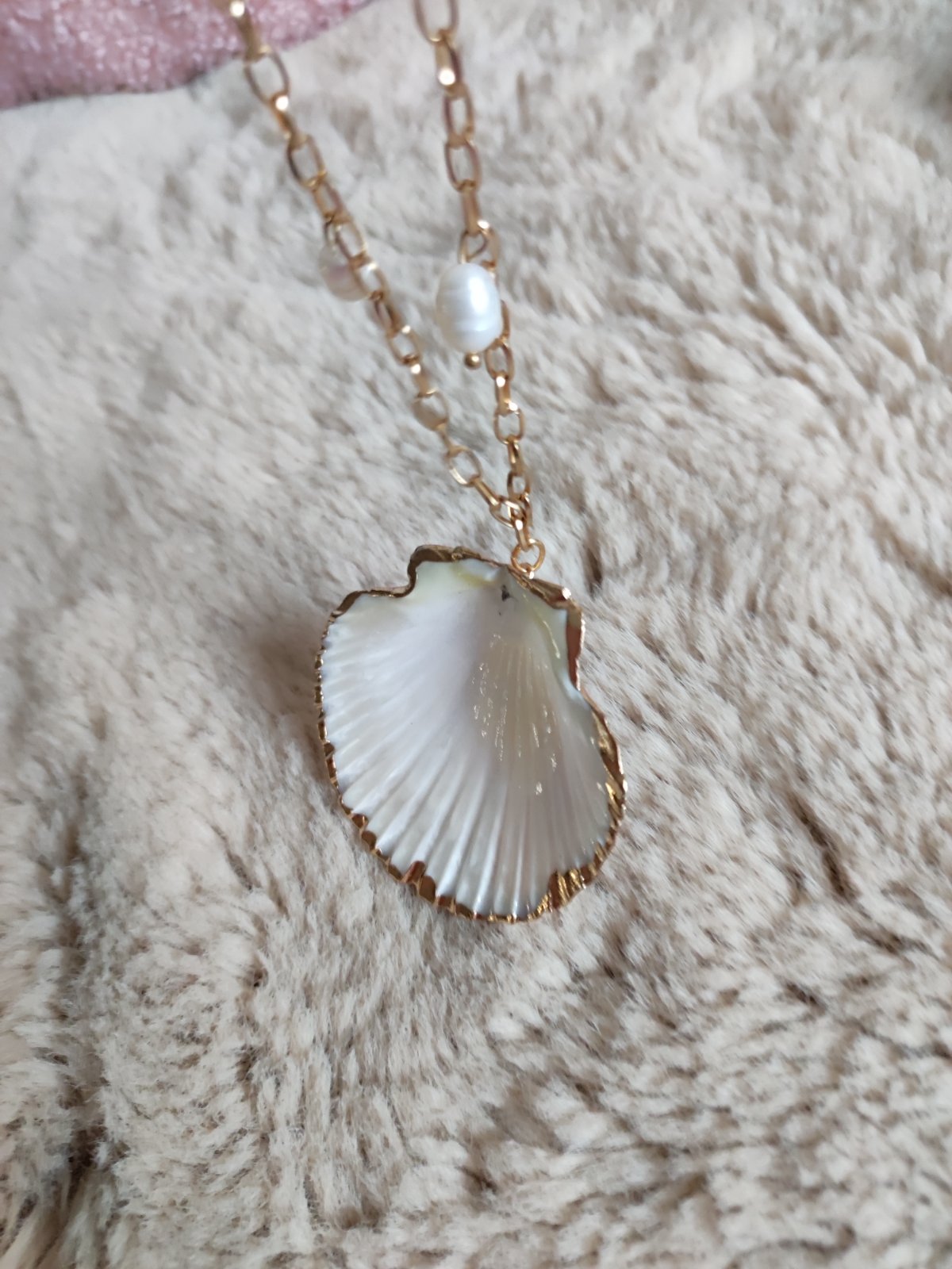 Náhrdelník tvorený zo zlatej retiazky a bielych perličiek rôznej veľkosti. Ukončenie na karabínku. Kovové časti bez obsahu niklu.Veľkosť: celková dĺžka : cca 32cm, perličky : priemer 12mm, 10mm, 8m...