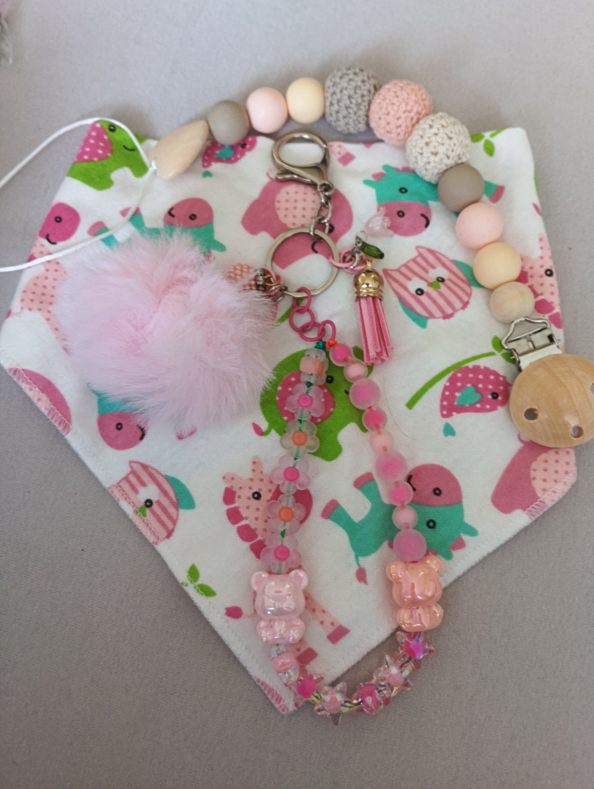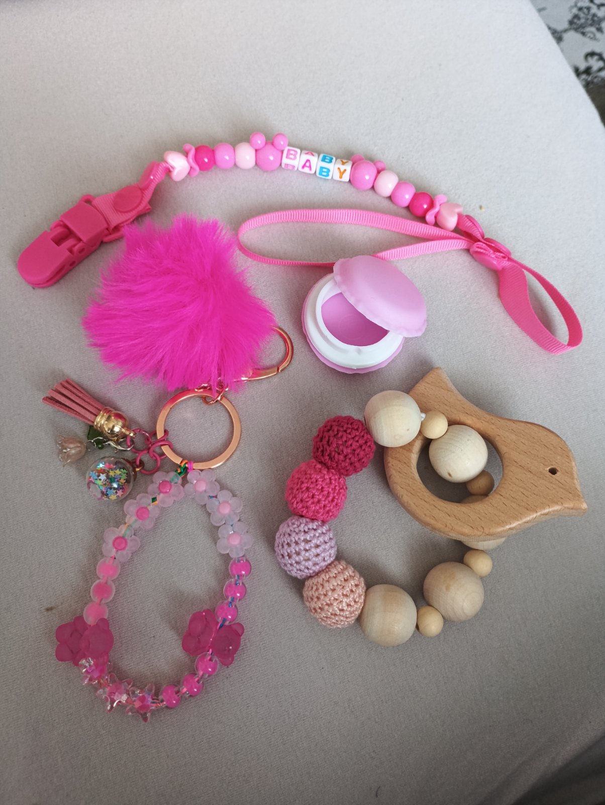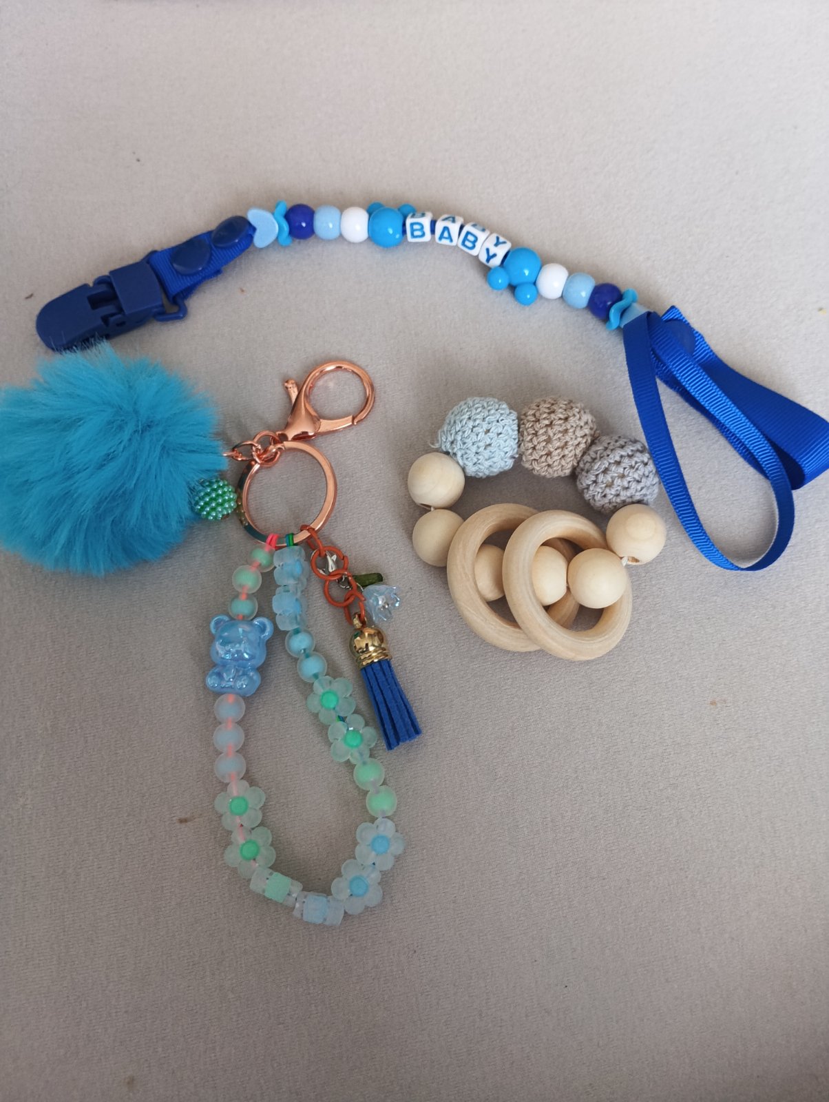 Vyrabam retiazky a privesky na kluce, mobily, kabelky a pre deti na dudliky aj s menom,hryzatka,hrkalky, retiazky na kociar.na cene sa viem dohodnut,da sa aj sko set alebo jednotlivo Cena je od 7e