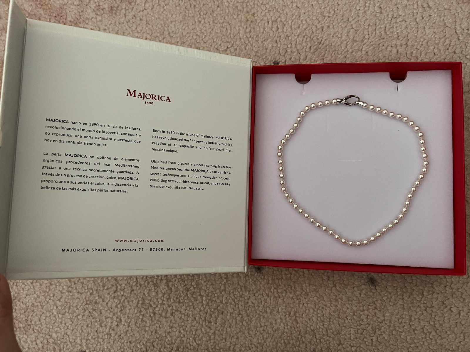 Krasne perly najlepsej kvality kupované na Mallorke , kde boli aj vyrobene , zapinanie je zo striebra.