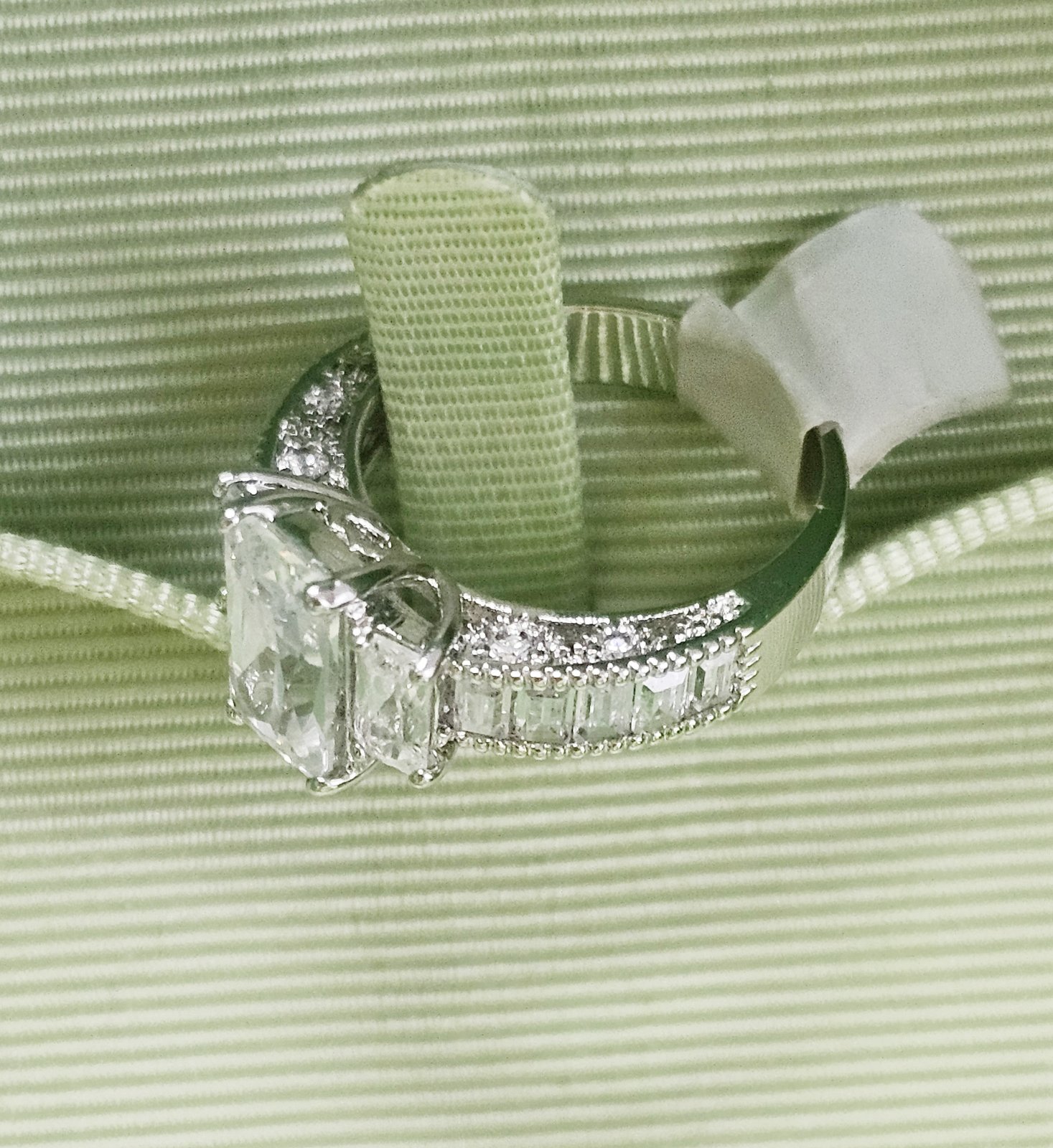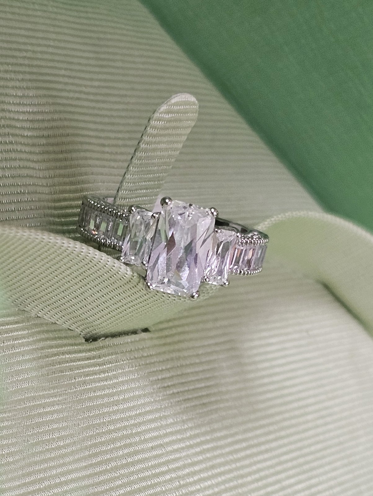 Prsteň je pokovaný rhodiom a vsádzaný CZ kryštálmi. Rhodiované prstene sú zo zliatiny medi a zinku, pokovenie rhodiom zlepšuje vzhľad a životnosť šperku.