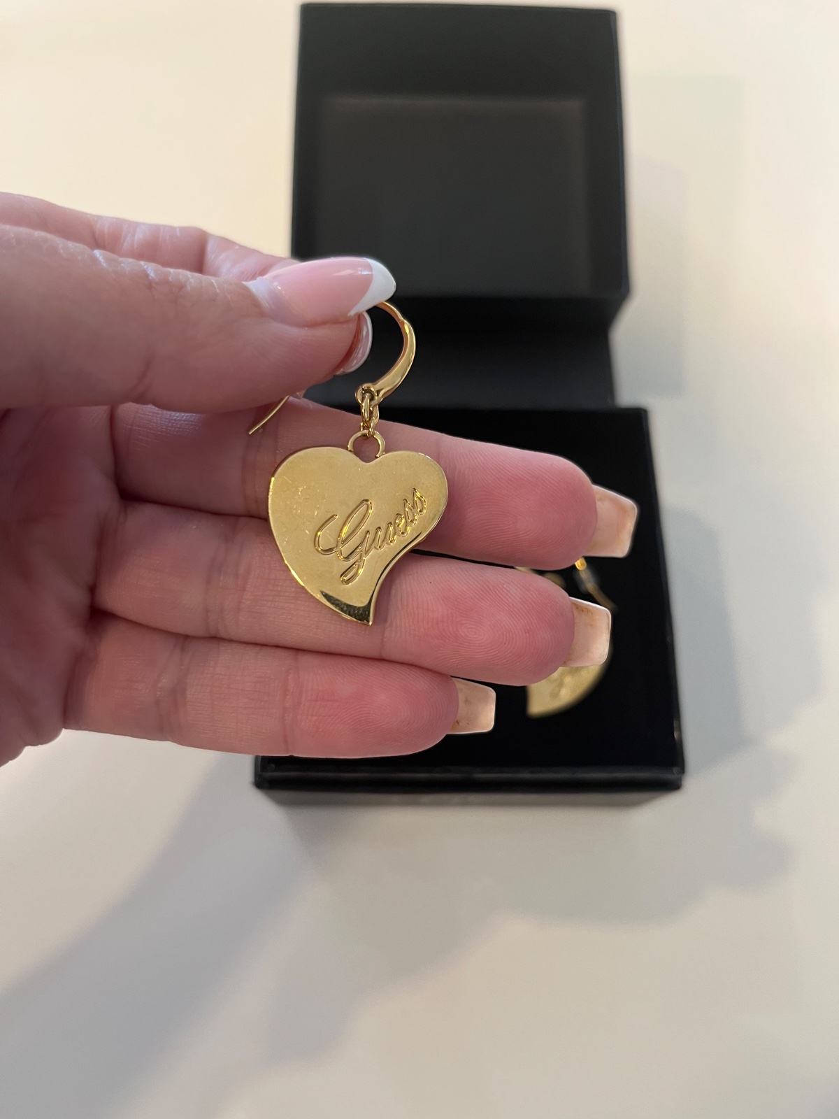 Predám pozlátené náušnice Lovely Guess, raz použité, bez chyby. Náušnice sú v Guess škatuľke, takže sú vhodné aj ako darček.