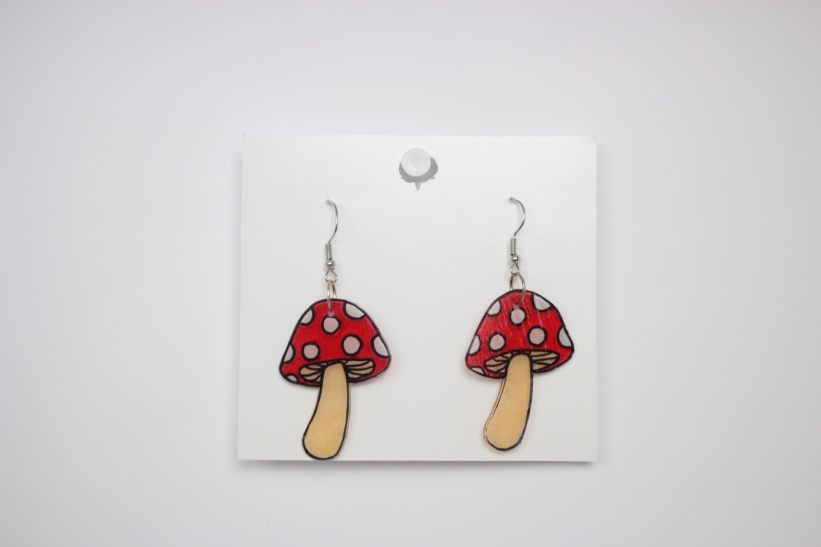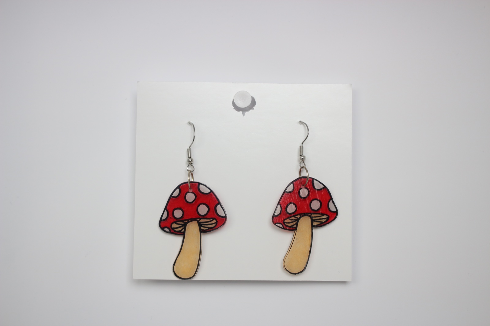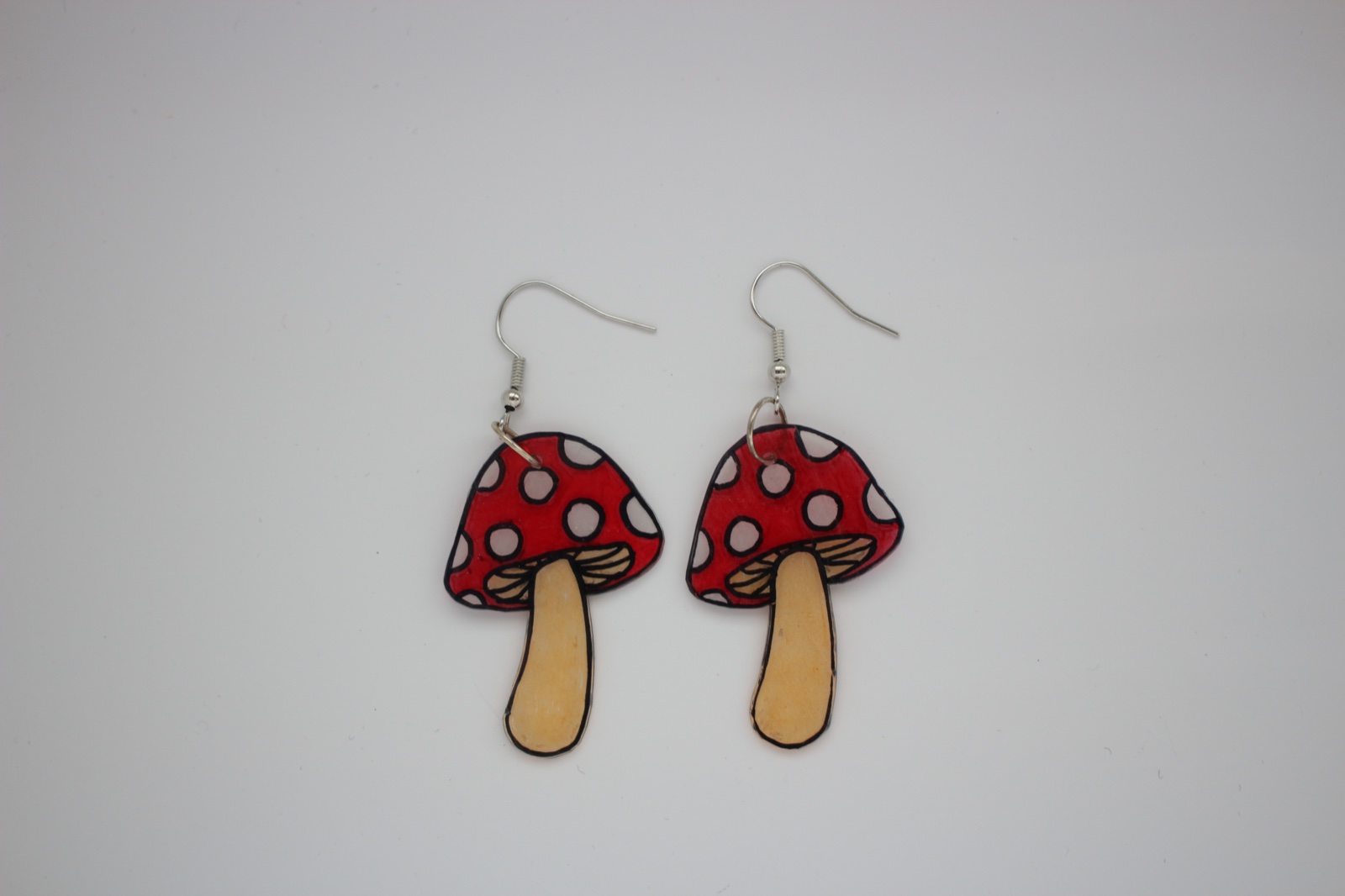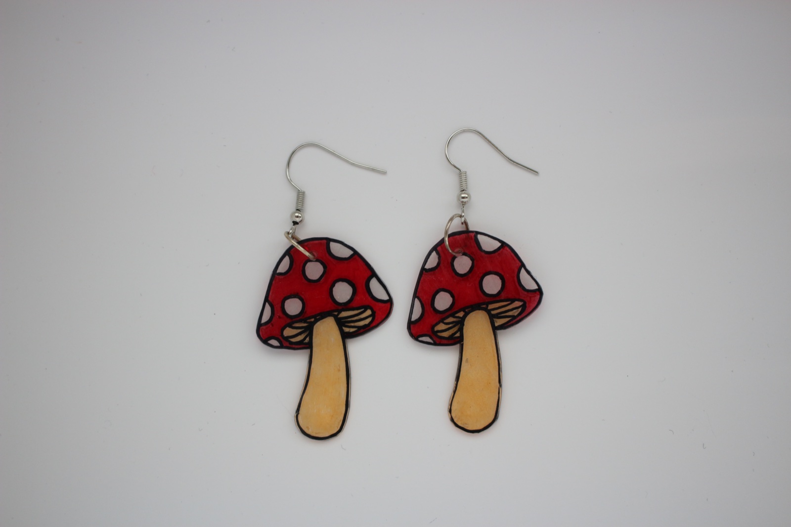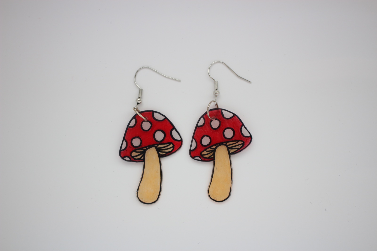 Ručne vyrobené handamde plastové náušnice v tvare červených muchotrávok 🍄 – kus z mojej značky Lacy Trash.