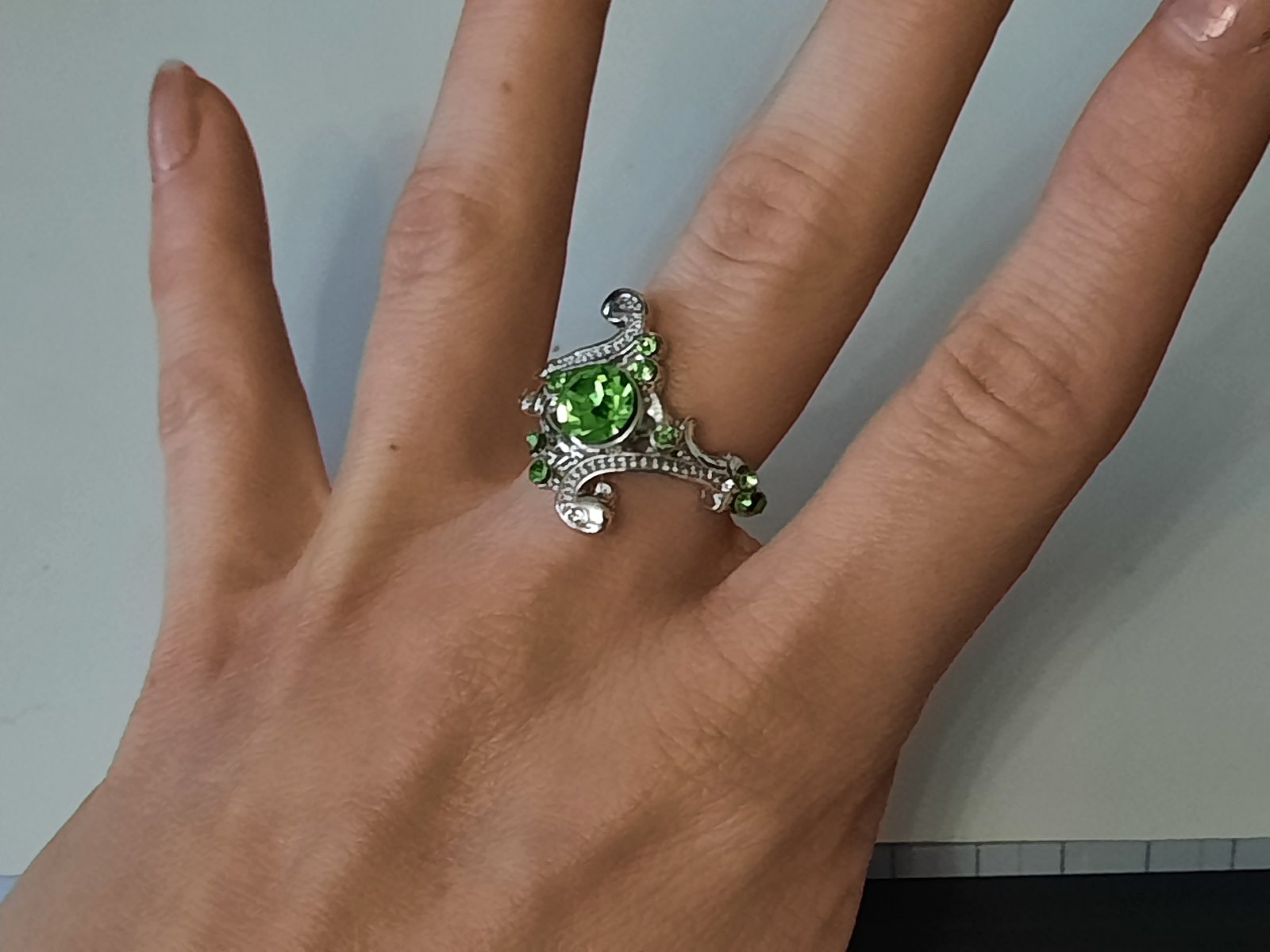 4. Strieborný prsteň so zeleným. Je z filmu Harry Potter. S (20€)